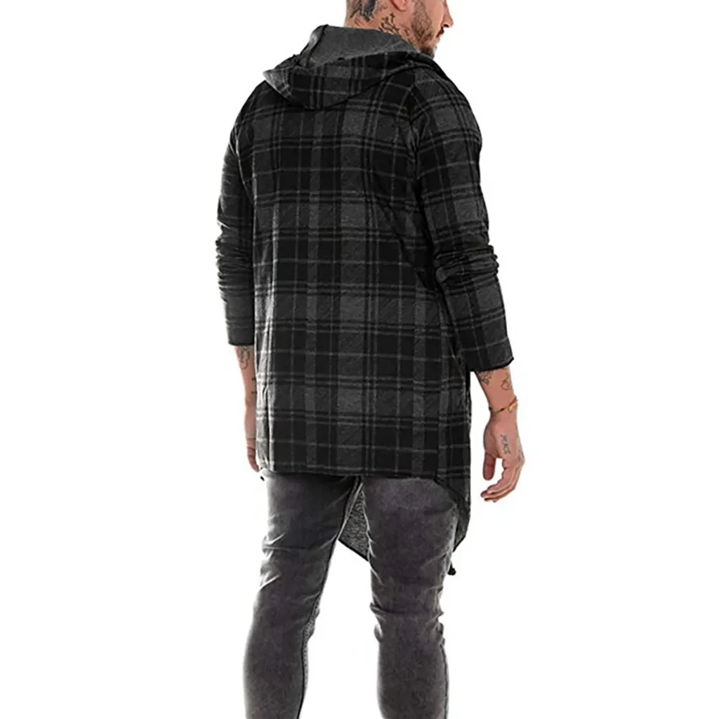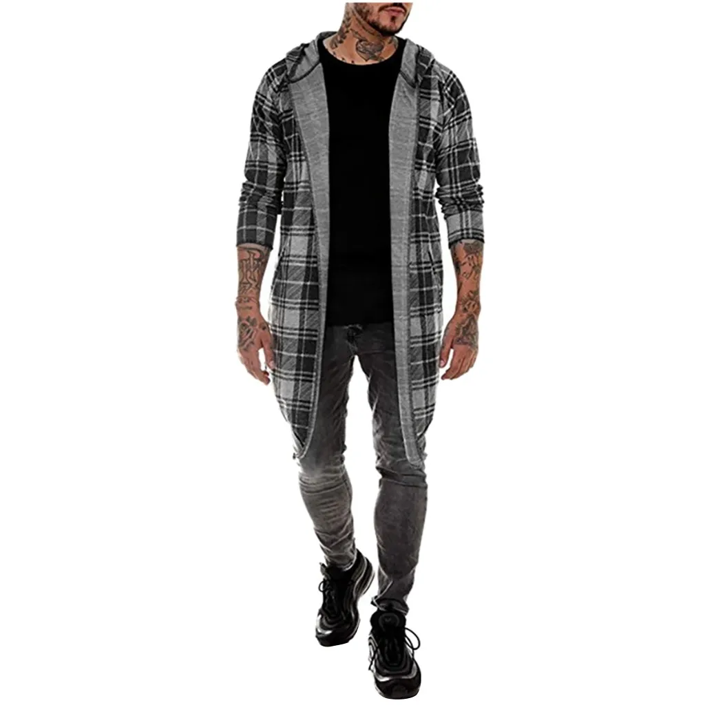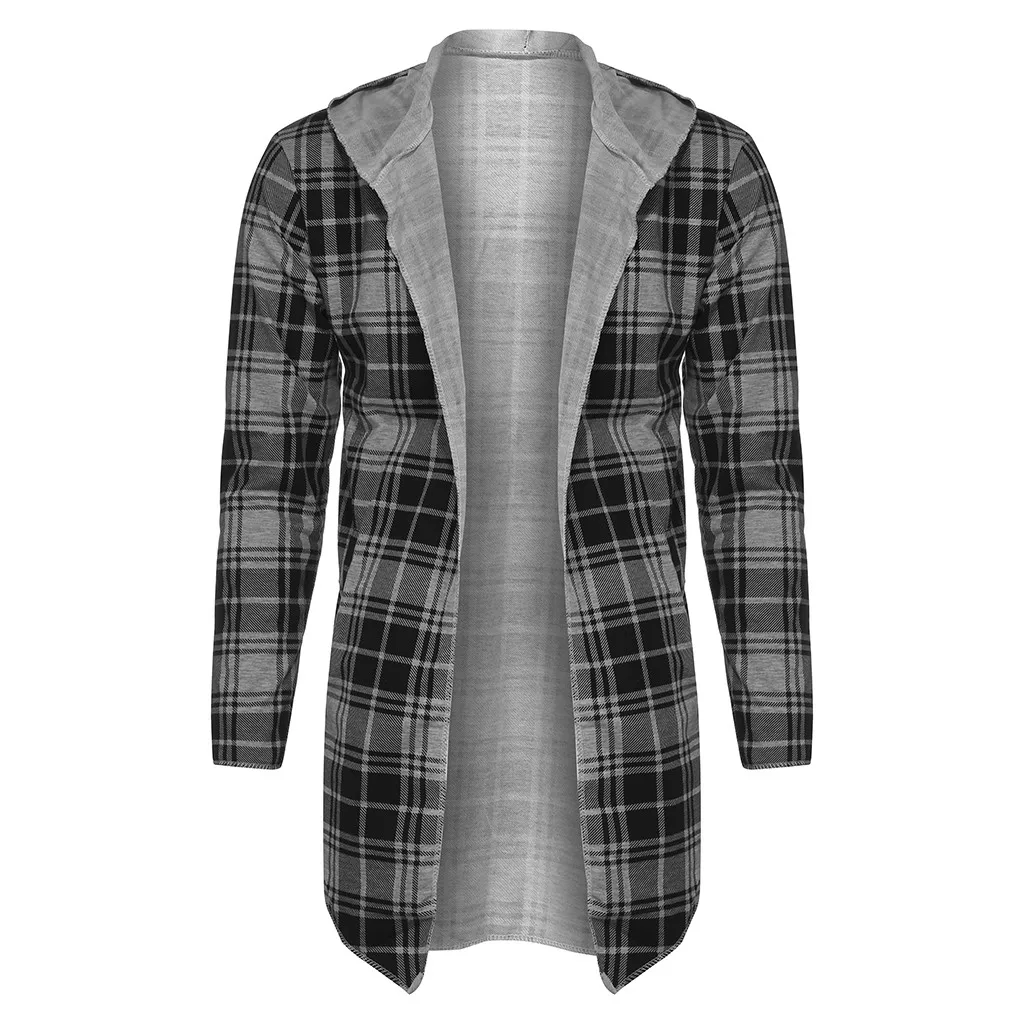 KANCOOLD мужской однотонный Тренч с капюшоном в стиле хип-хоп, Кардиган с длинным рукавом, Повседневная клетчатая ветровка Jul16