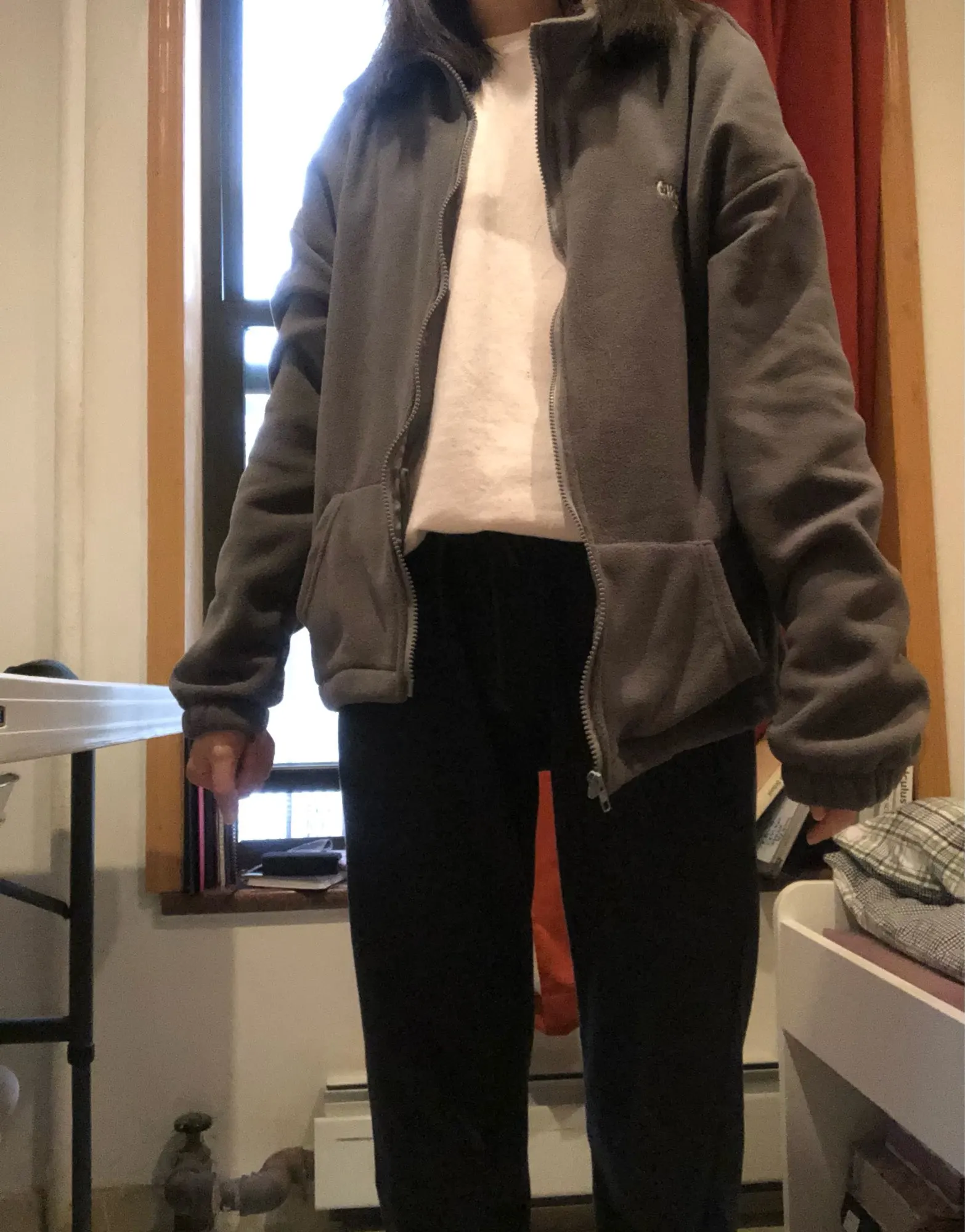 Заказ дошёл меньше чем за 2 недели, удивительно просто! Качество среднее, как и ожидалось. Брала для дома, поэтому норм. Зелёный цвет совсем не такой как на фото и молния в цвет не попадает сильно. В сером молния лучше подходит по оттенку. Рукава тинейджерские, оч длинные, надо укорачивать.