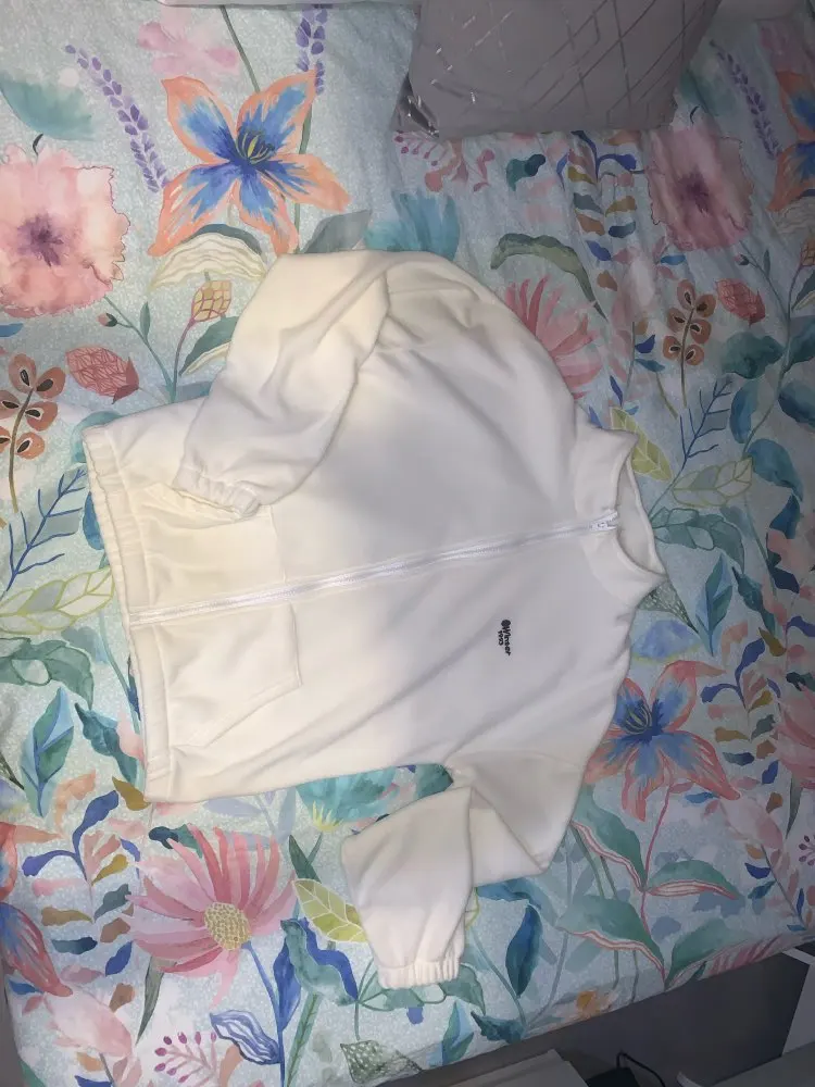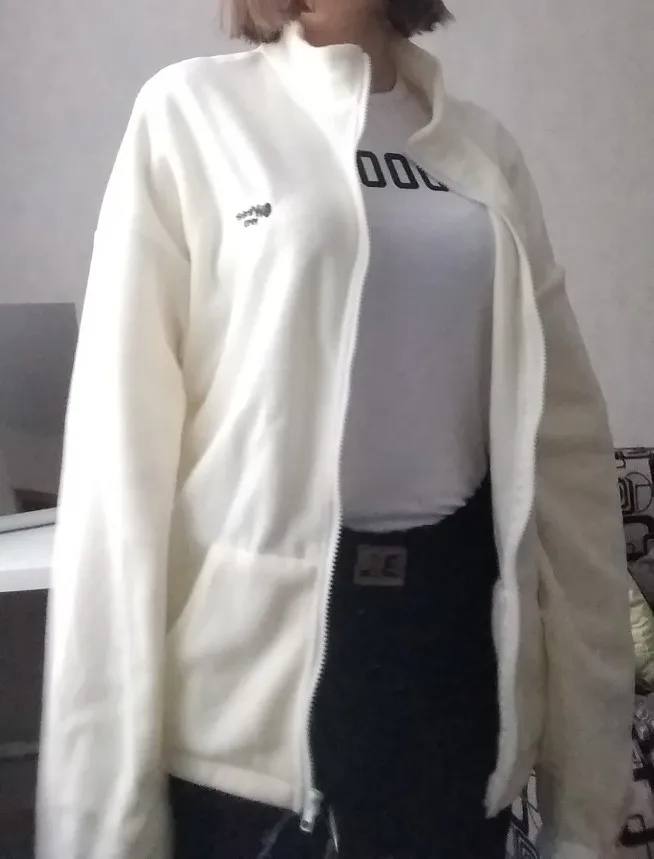 очень довольна кофтой, заказывала 28.08 пришла посылка - 15.09. приятная на ощупь брала размер L (хоть у меня M), хотела оверсайз, поэтому взяла на размер больше. всем советую, на осень и весну очень крутой вариант верхней повседневной одежды