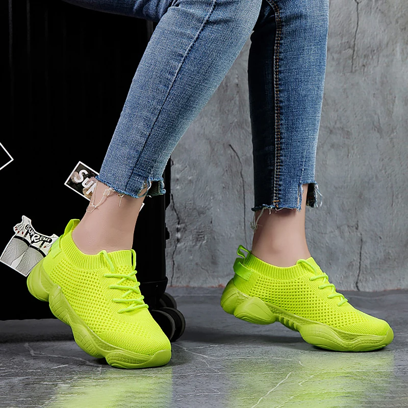 Кроссовки женские на плоской подошве, дышащие сетчатые, флуоресцент...