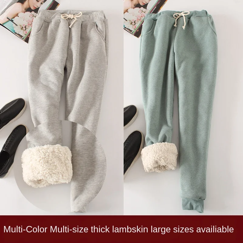 Спортивные штаны из овечьей шкуры, женские, на осень и зиму, размера плюс вельветовые, свободные, утепленные, тонкие, теплые