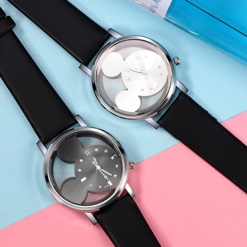 Часы женские кварцевые с мультяшным Микки, люксовые брендовые прозр...