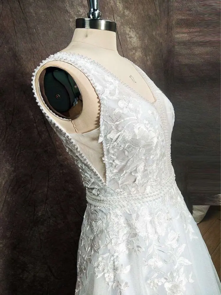 Платье женское свадебное с V-образным вырезом, кружевом и аппликацией