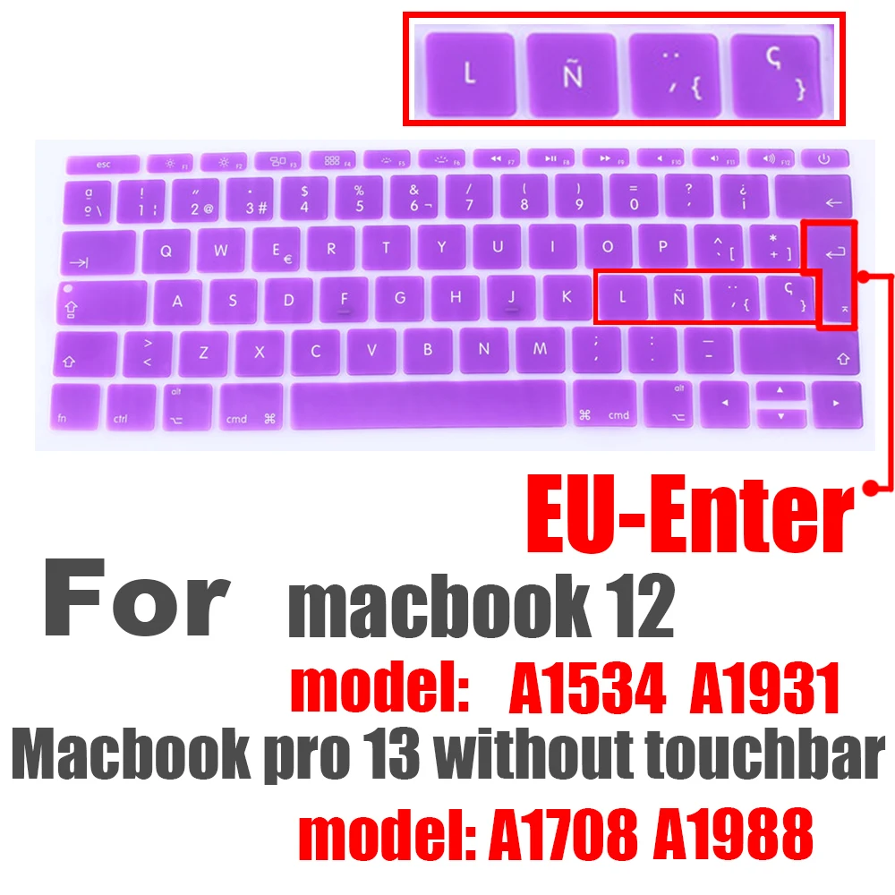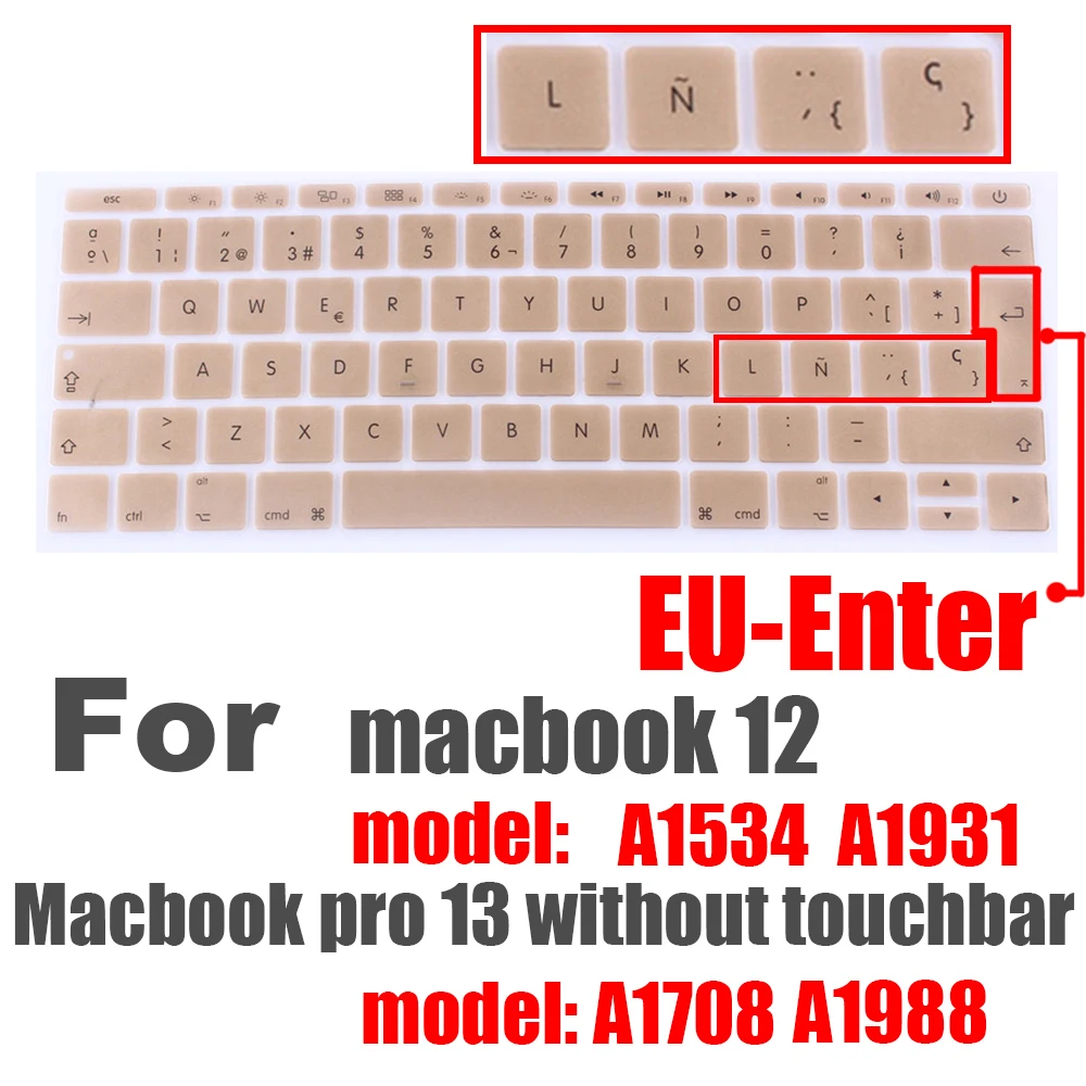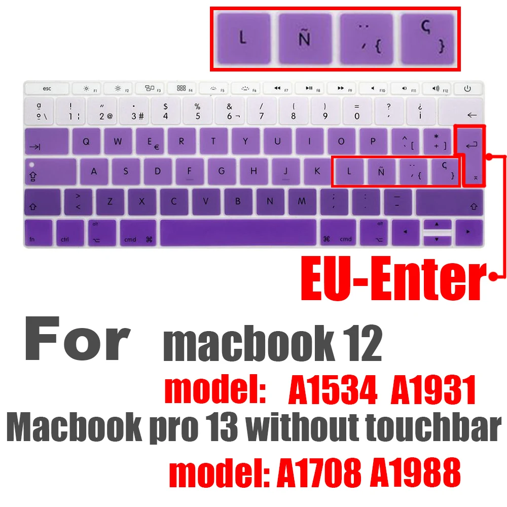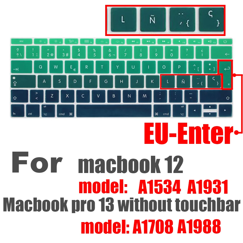 Чехол для ноутбука с испанской цветной силиконовой клавиатурой для macbook pro13 A1708 A1988 12 "retina A1534 A1931, защитная пленка, чехол для клавиатуры