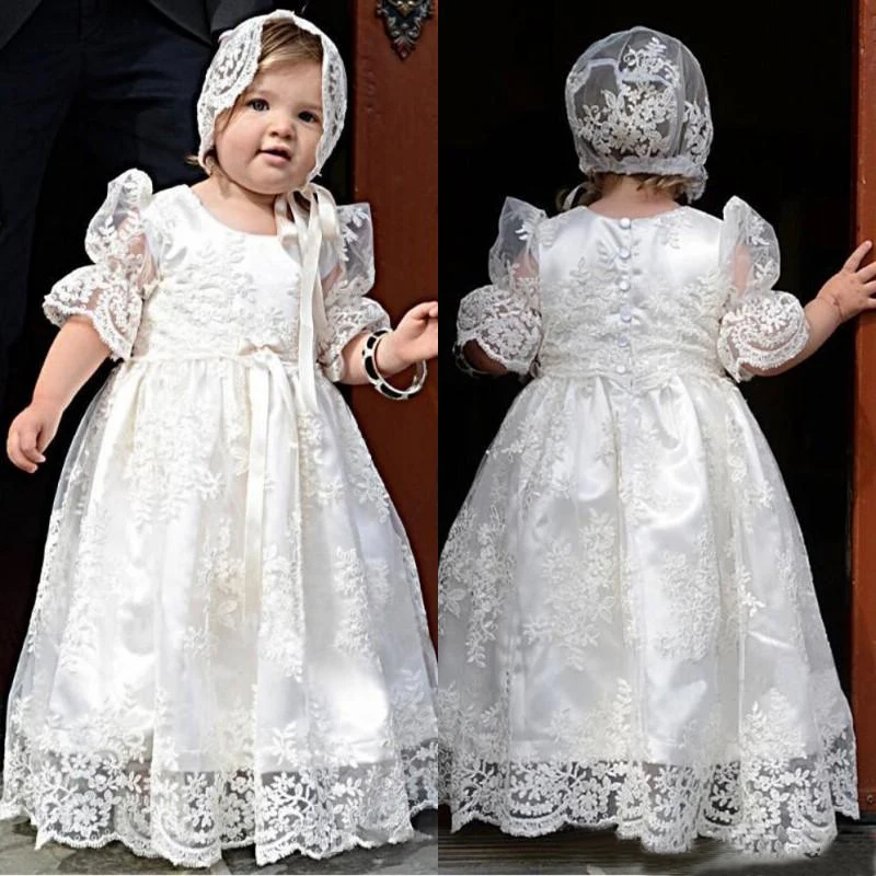 Кружевное детское платье с круглым вырезом и коротким рукавом