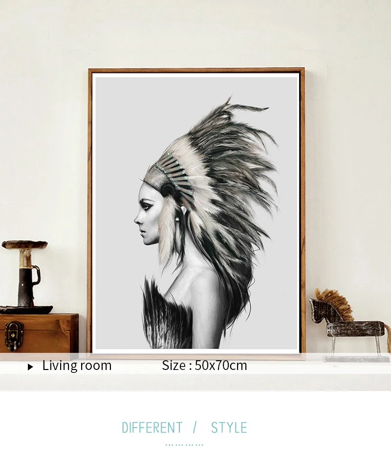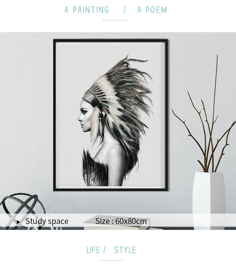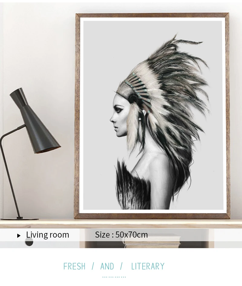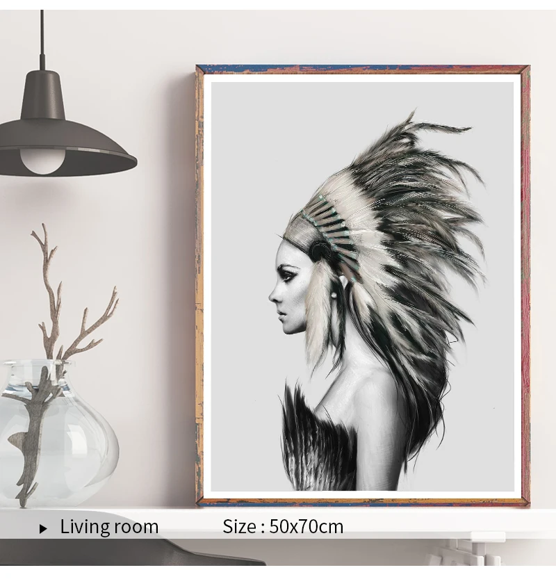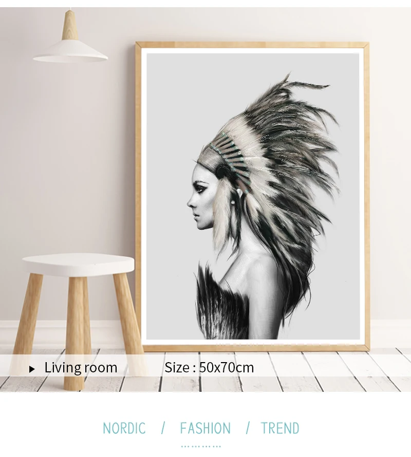 Индийские женские перья скандинавский холст художественный принт черно-белый абстрактный постер Настенная картина минималистичный Декор для комнаты