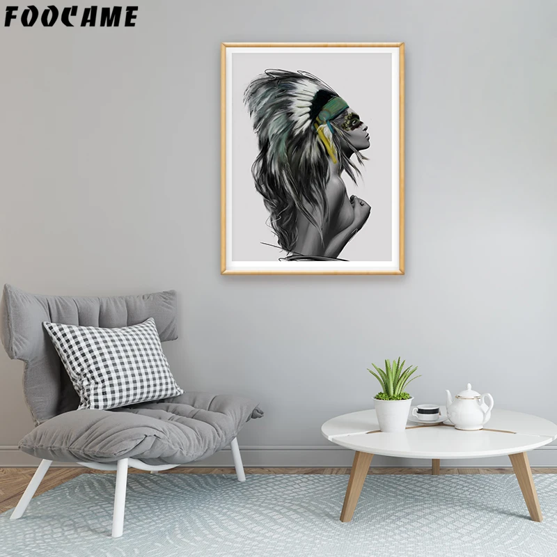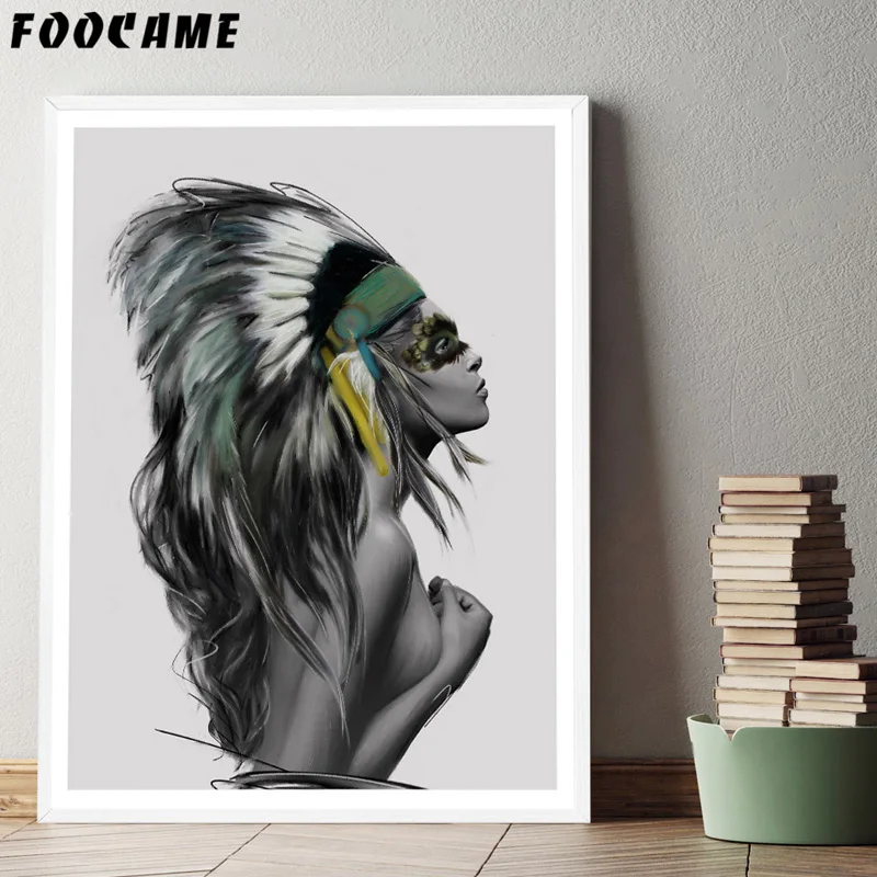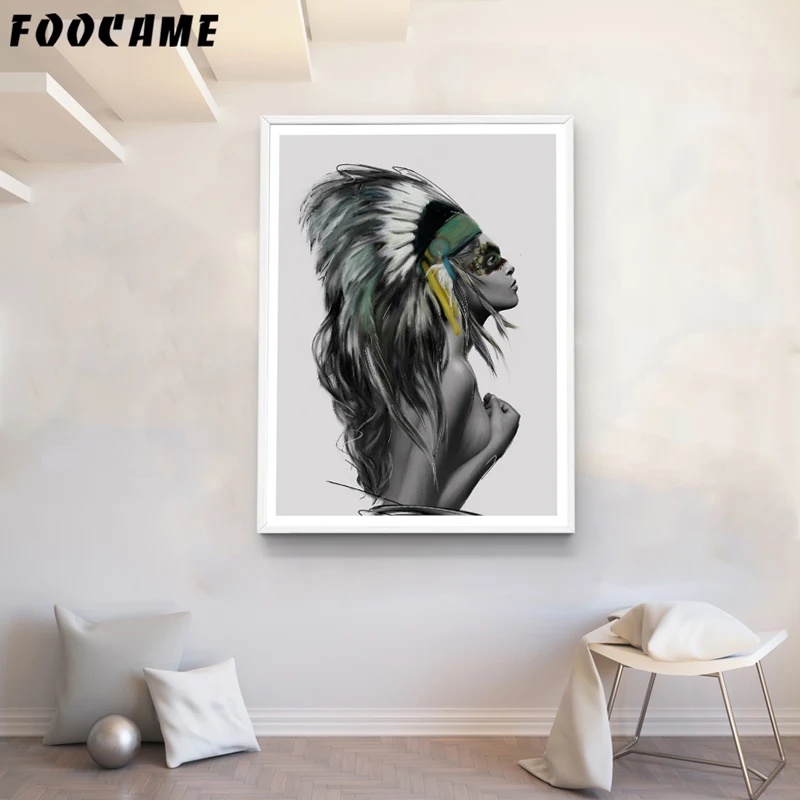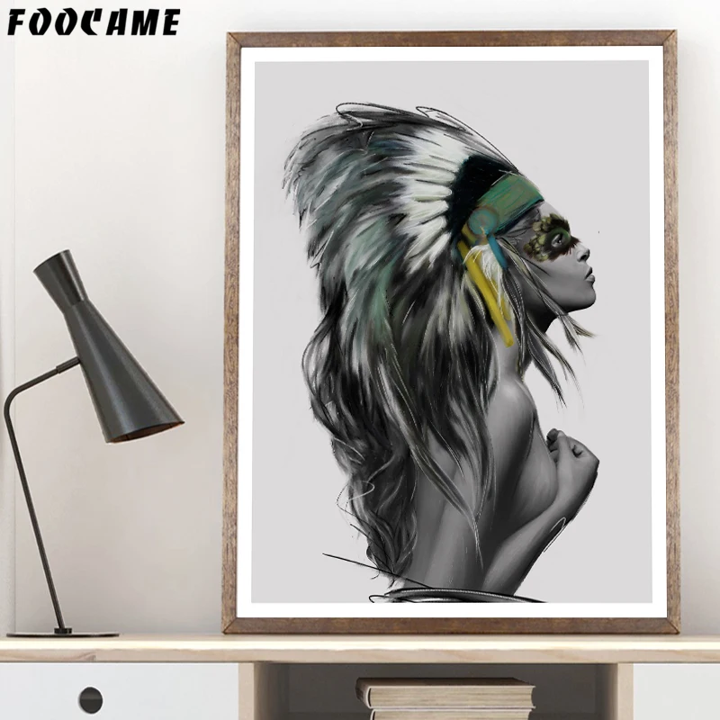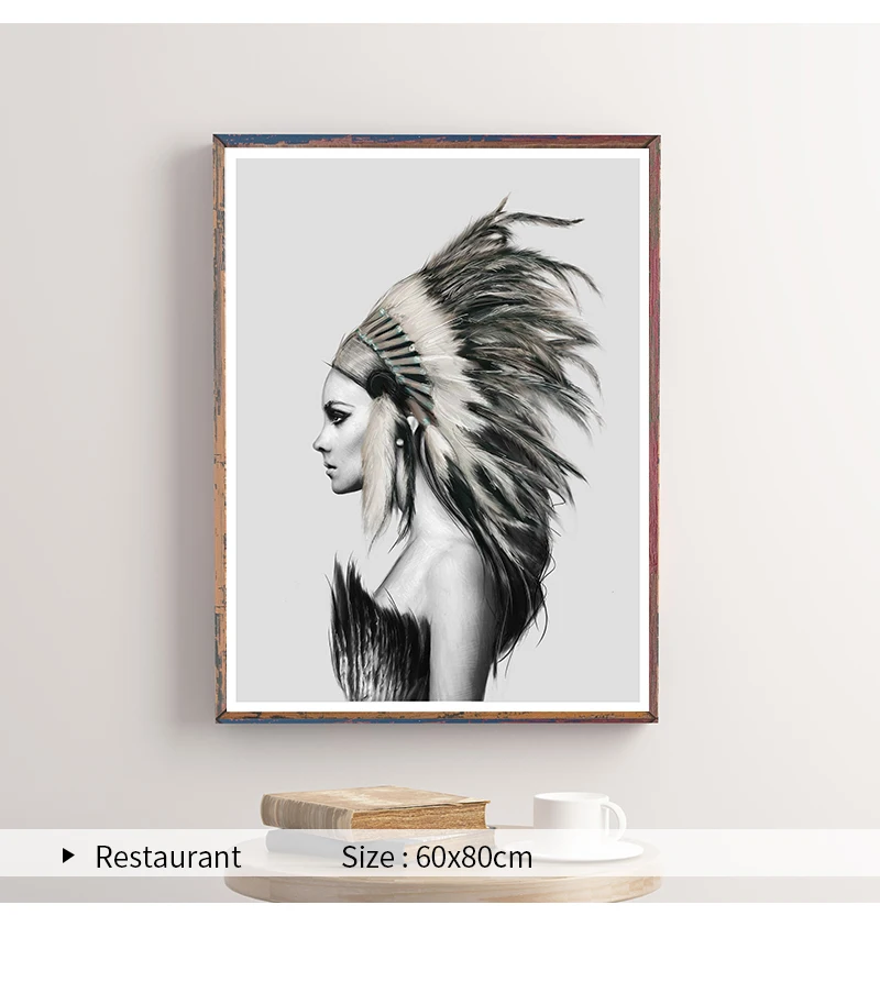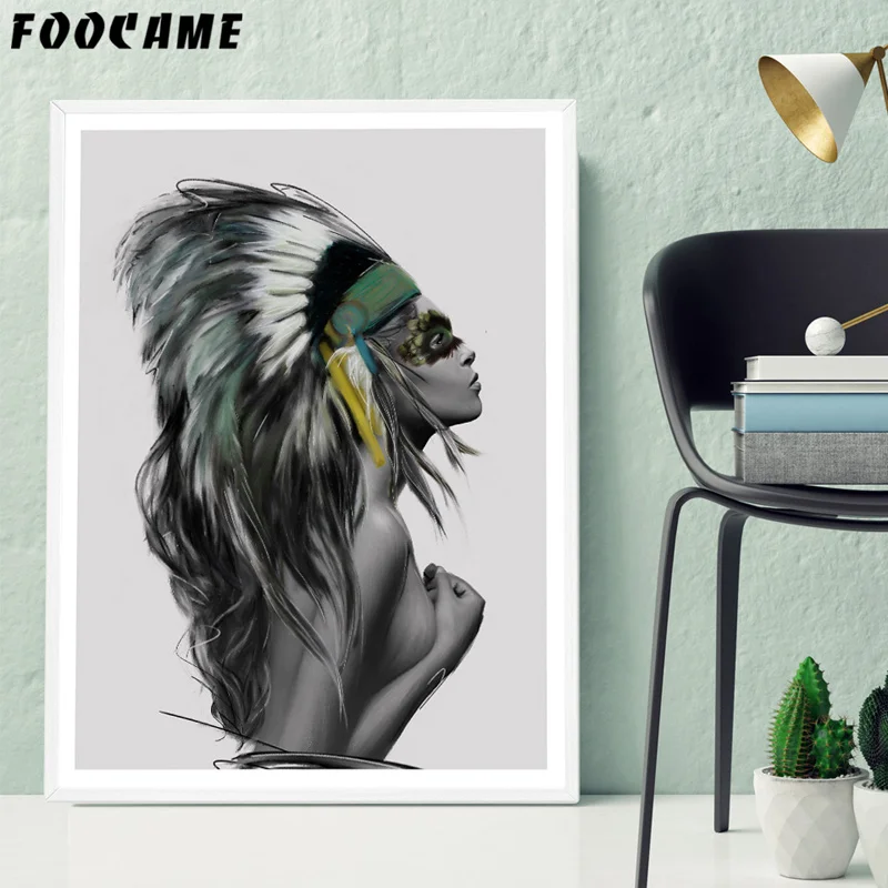 Индийские женские перья скандинавский холст художественный принт черно-белый абстрактный постер Настенная картина минималистичный Декор для комнаты