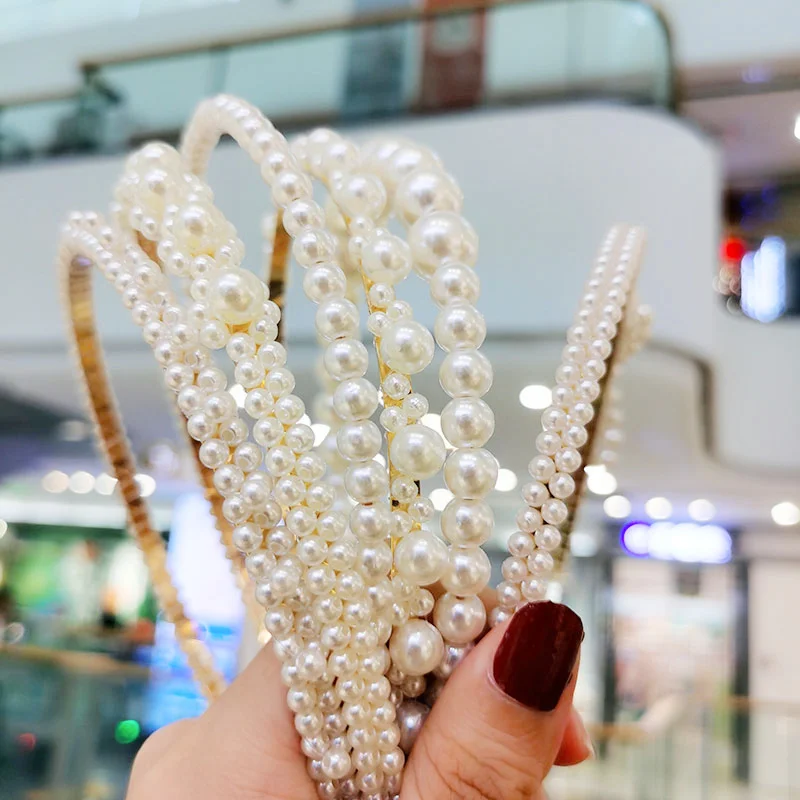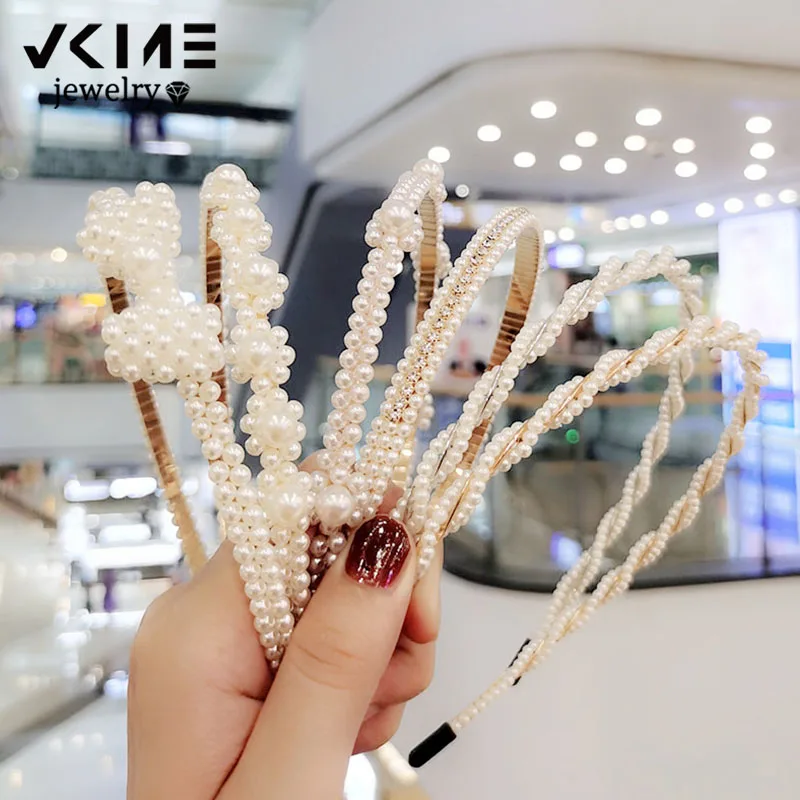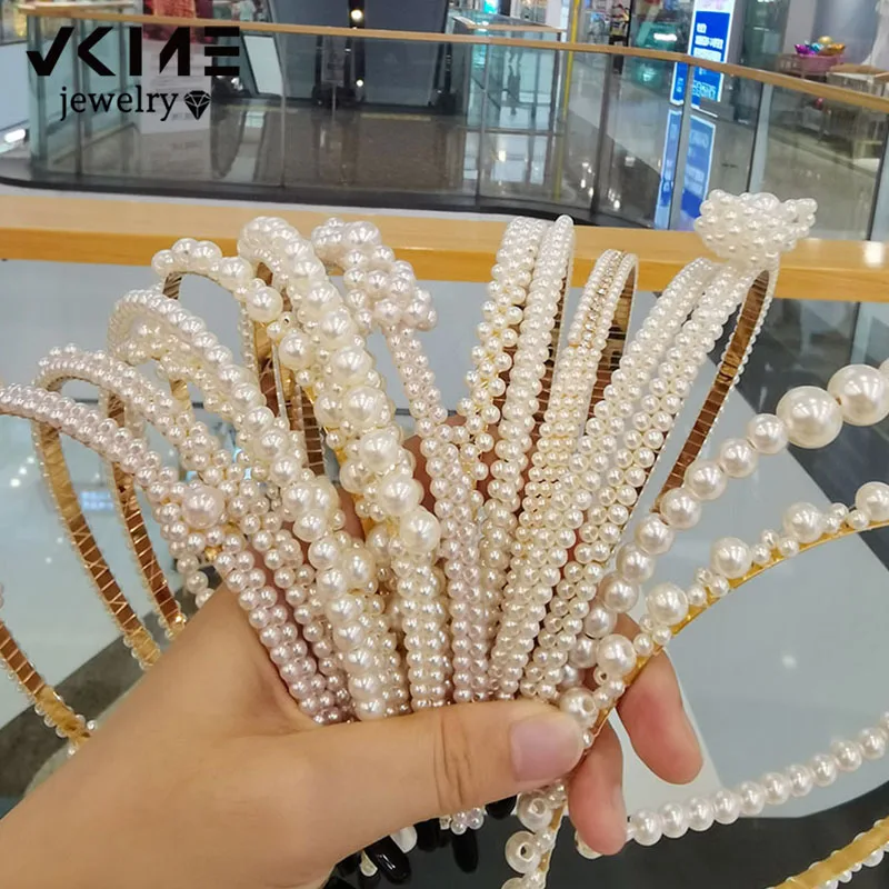 Повязка на голову VKME с бусинами для девушек, аксессуар для волос на головные уборы с жемчугом, ручной работы