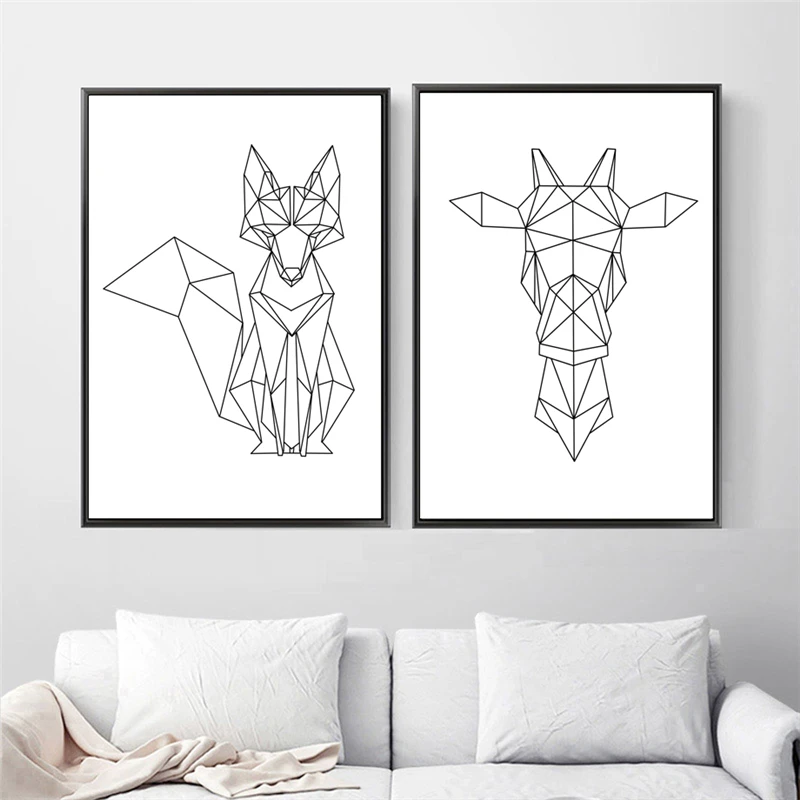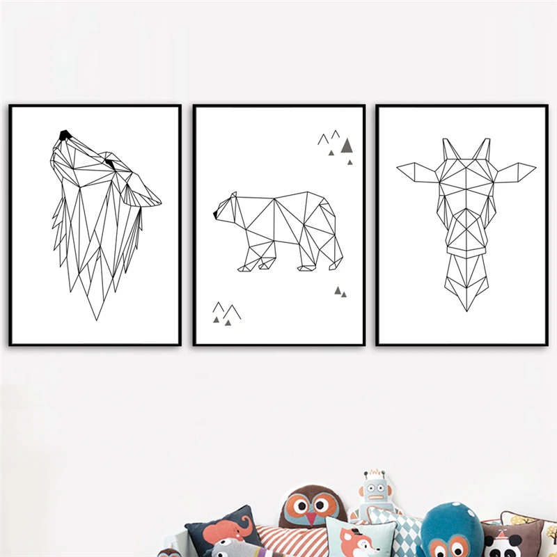 Минималистская черно-белая Геометрическая линия животных Олень Медведь волк Жираф настенное полотно картина, печатный плакат Настенная картина