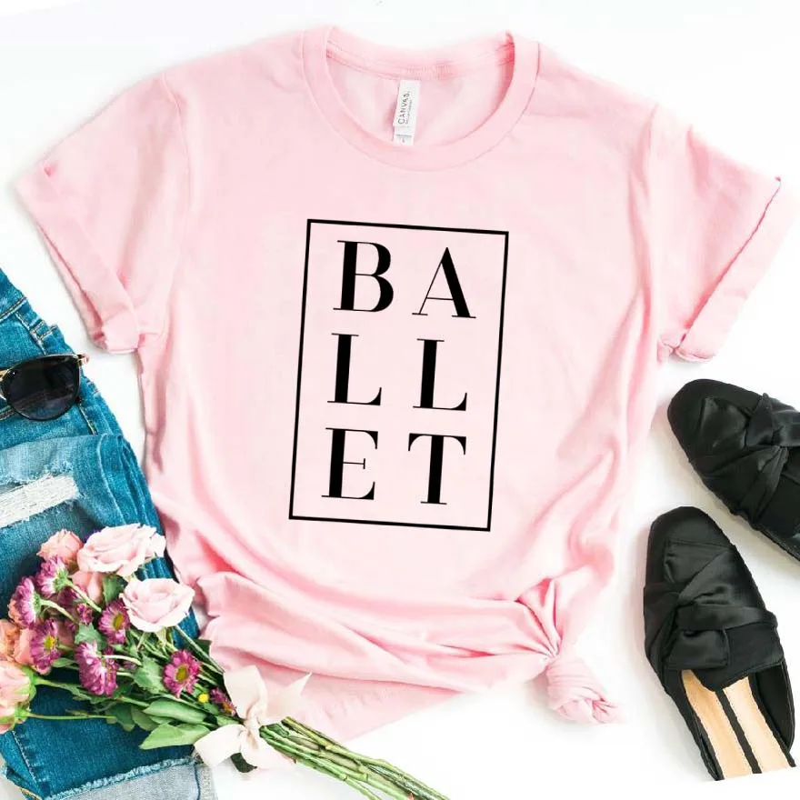 Женская футболка, балетная Футболка с принтом, с надписью, Женская свободная футболка с коротким рукавом и круглым вырезом, женские повседневные футболки одежда, топы