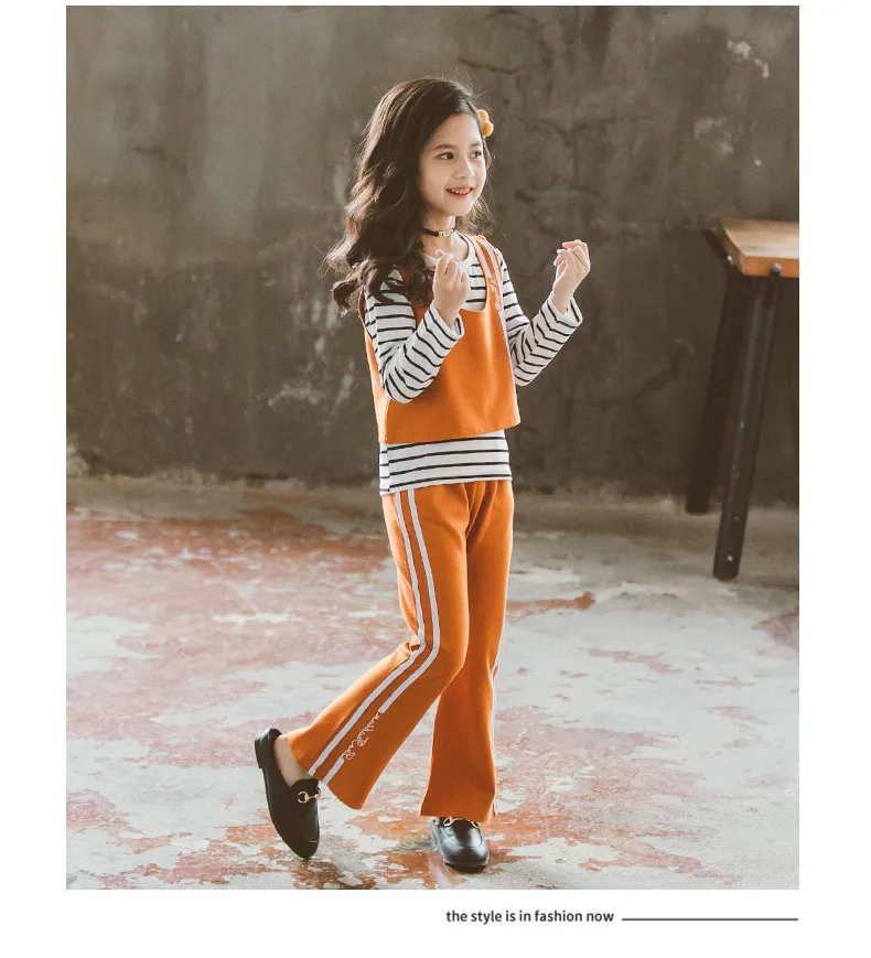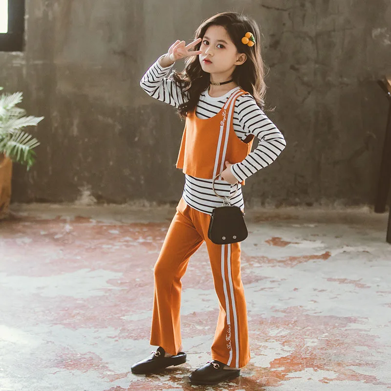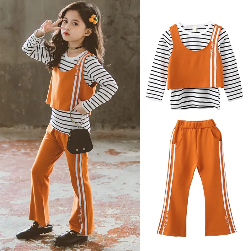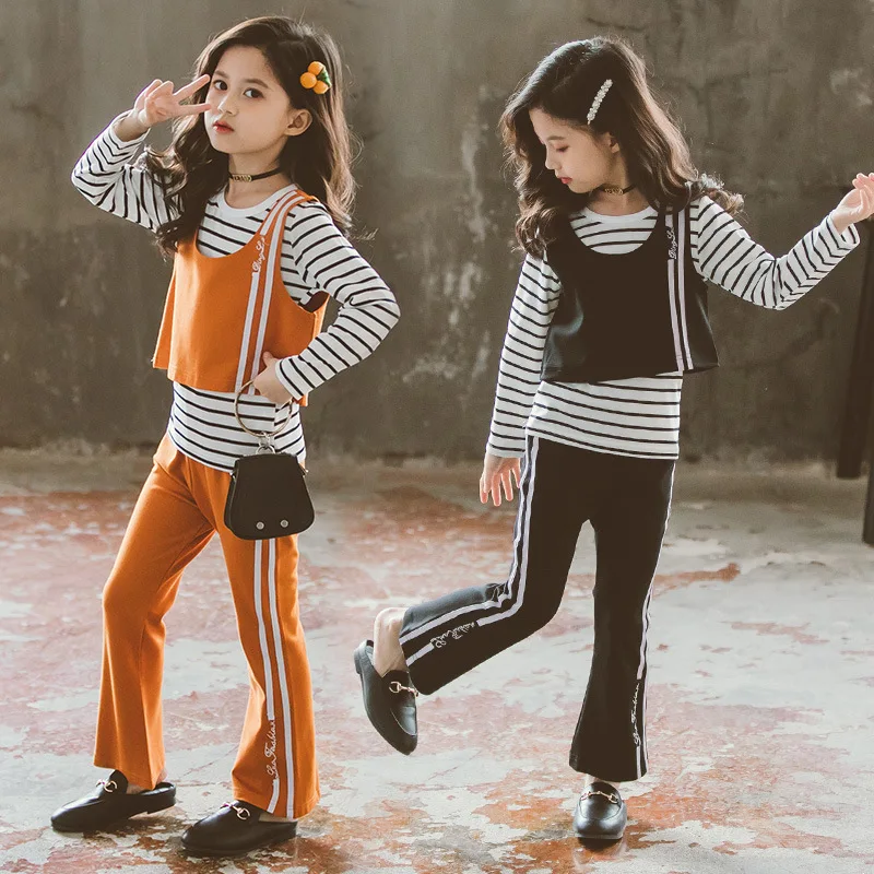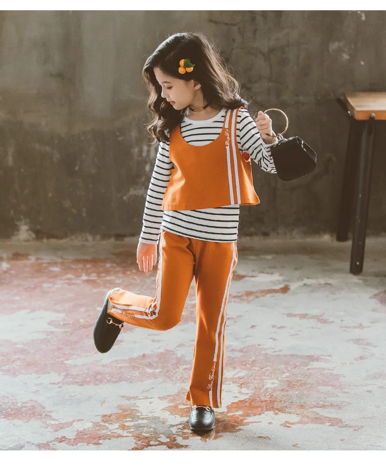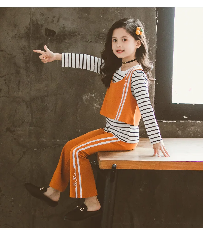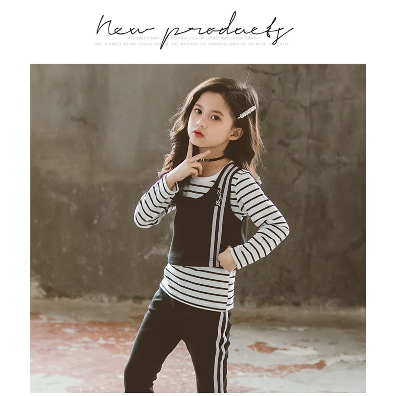 Костюм для девочек, новинка 2020 года, костюм для девочек на весну и осень, детский корейский костюм в полоску, повседневный модный костюм, одежда для девочек 10-12 лет