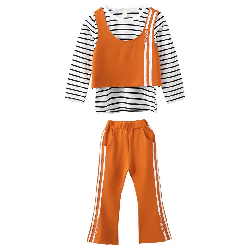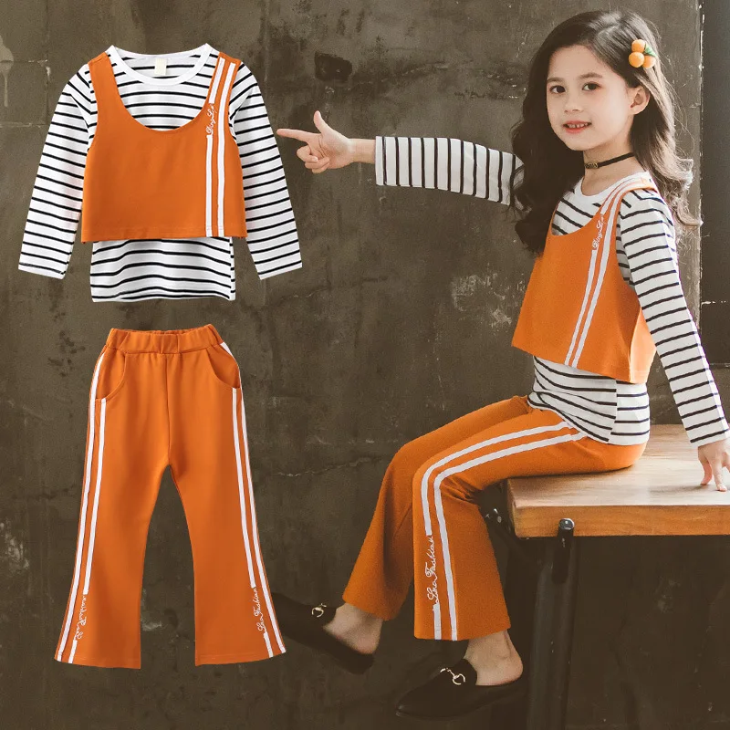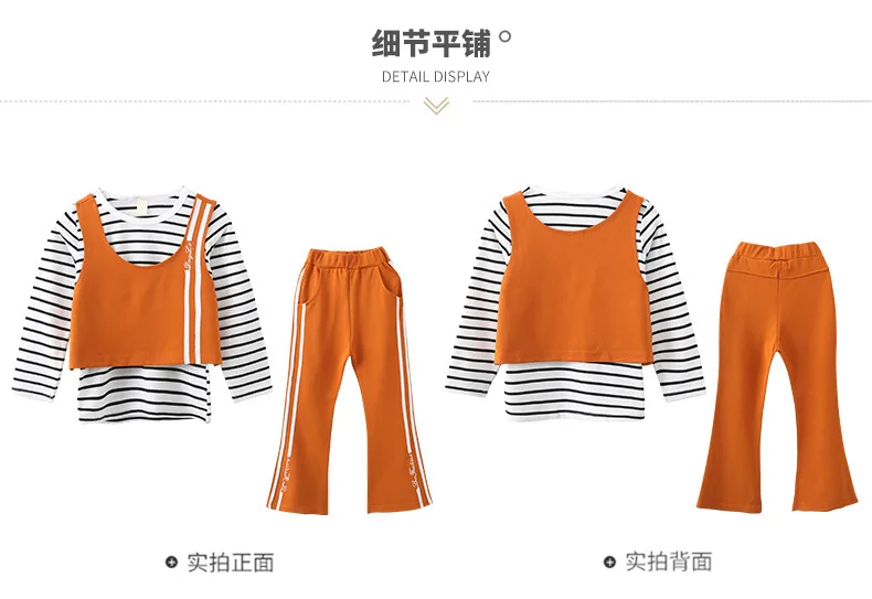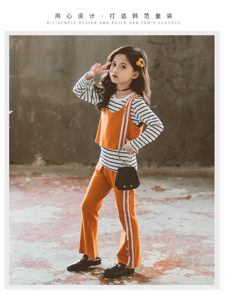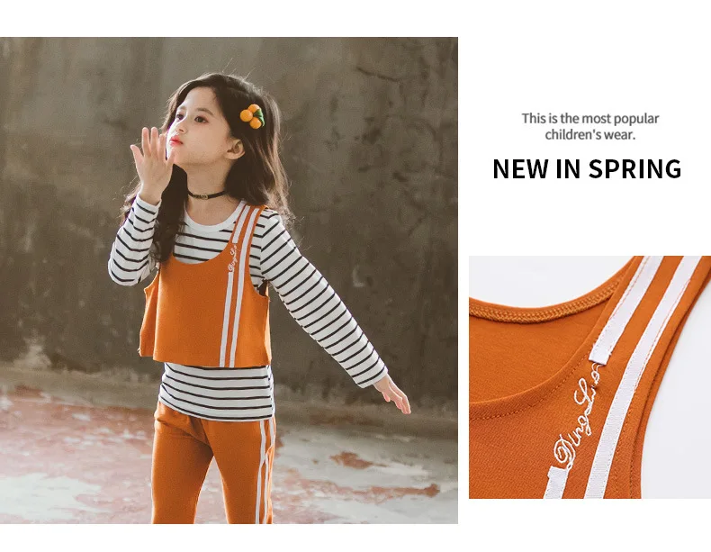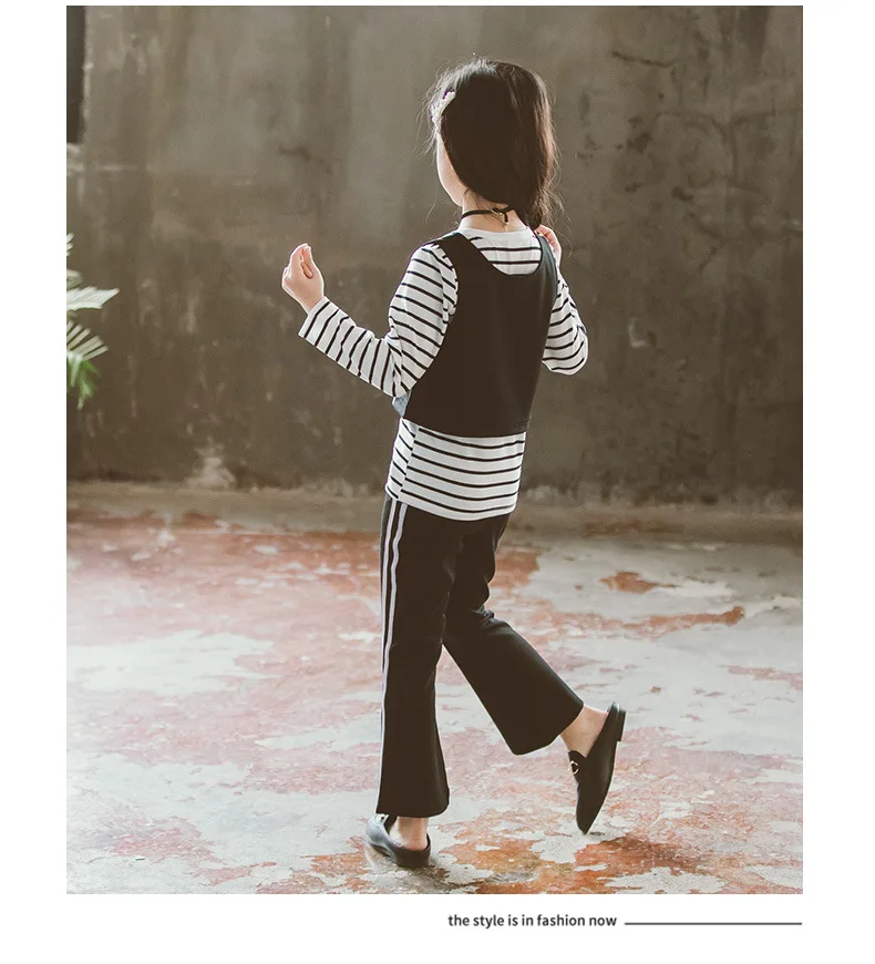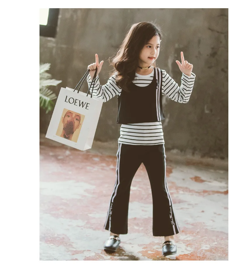 Костюм для девочек, новинка 2020 года, костюм для девочек на весну и осень, детский корейский костюм в полоску, повседневный модный костюм, одежда для девочек 10-12 лет
