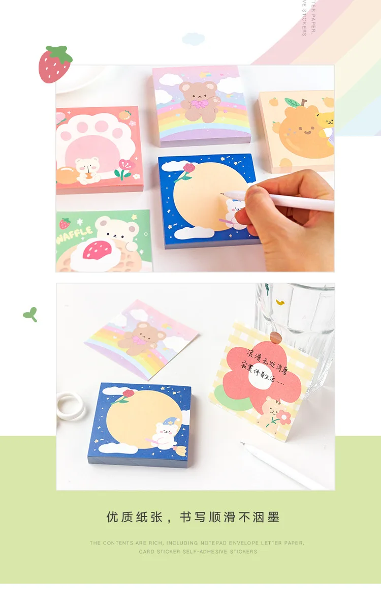 Блокнот для заметок, 100 листов, милый фантазийный медведь, кавайные канцелярские принадлежности, портативный блокнот, школьные и офисные принадлежности