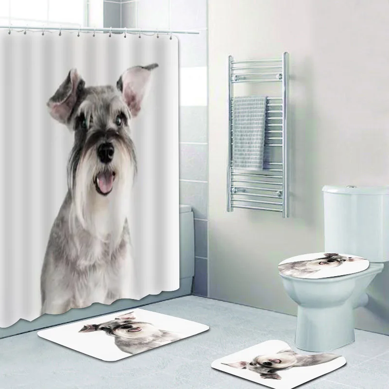 Занавеска для душа с изображением собаки шнауцера, занавеска для ванной комнаты, миниатюрные коврики для декора туалета со смеющимся изображением шнауцера