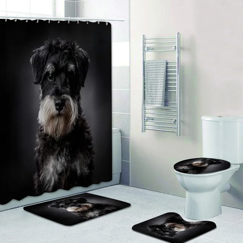 Восхитительный портрет шнауцера, занавеска для душа с собакой, занавеска для ванной, Смеющийся миниатюрный коврик породы шнауцер, коврик для украшения туалета