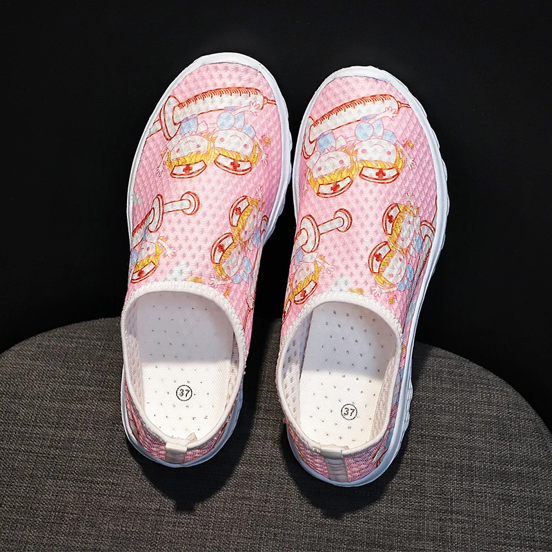 Кроссовки женские сетчатые с мультяшным принтом, дышащие легсветильник, без шнуровки, плоская подошва, для медсестер и врачей, летние