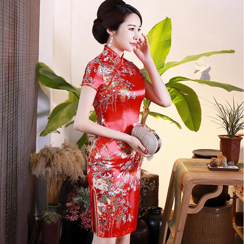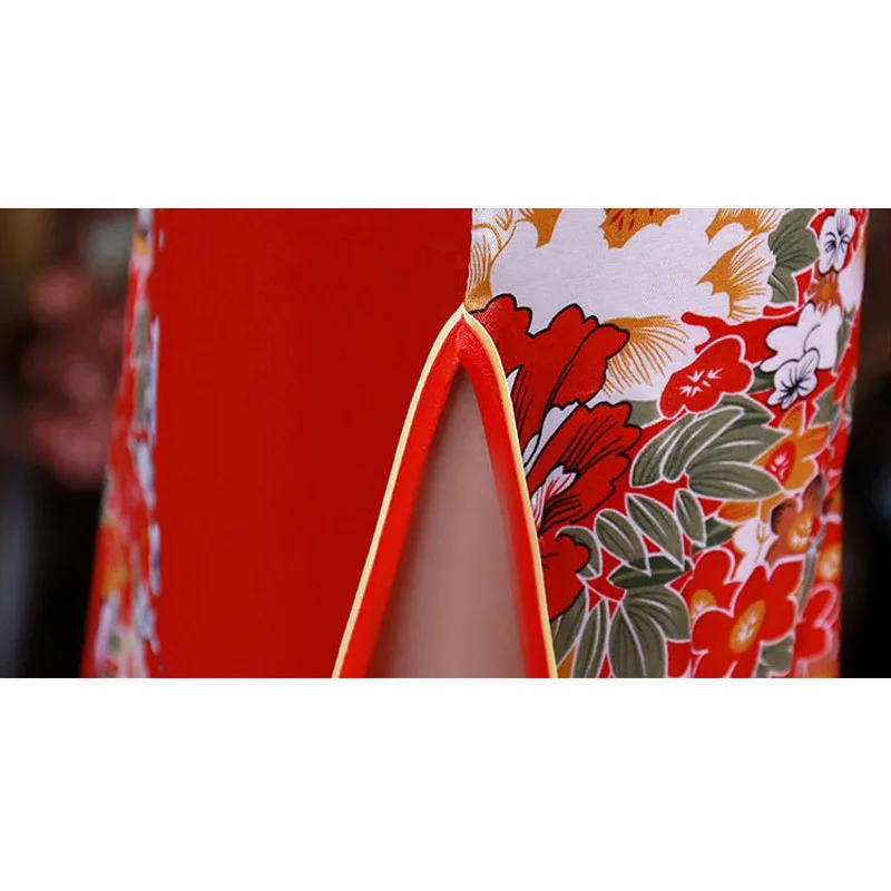 Винтажное платье-Ципао с коротким рукавом и цветочным принтом