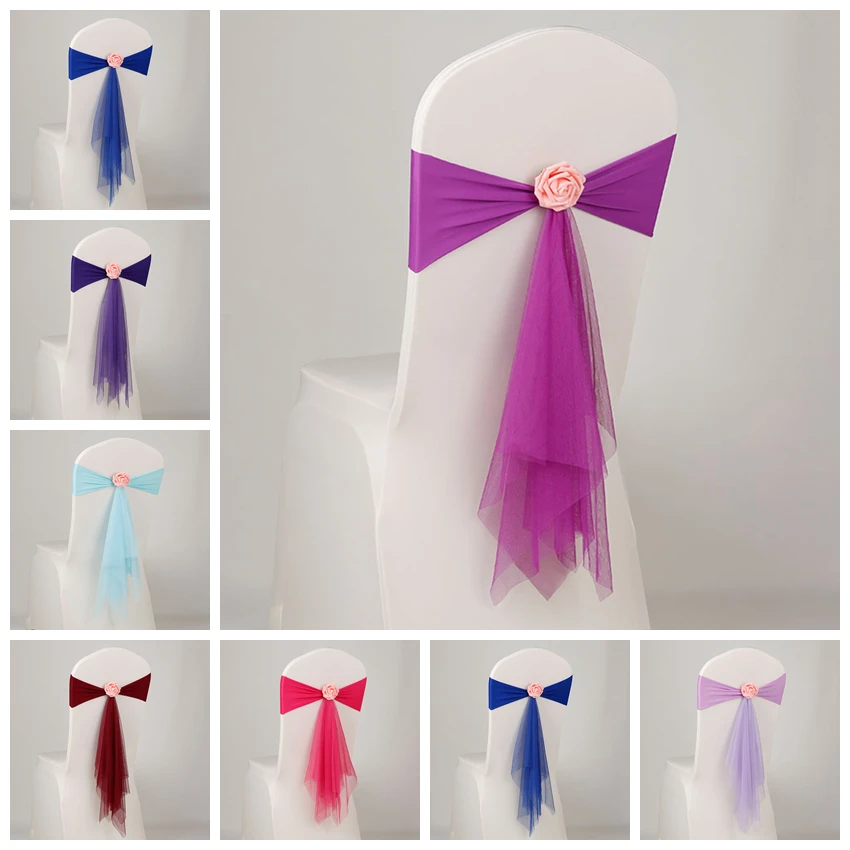 Украшение для стула из органзы с цветочным поясом из спандекса