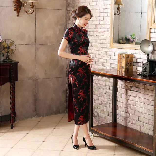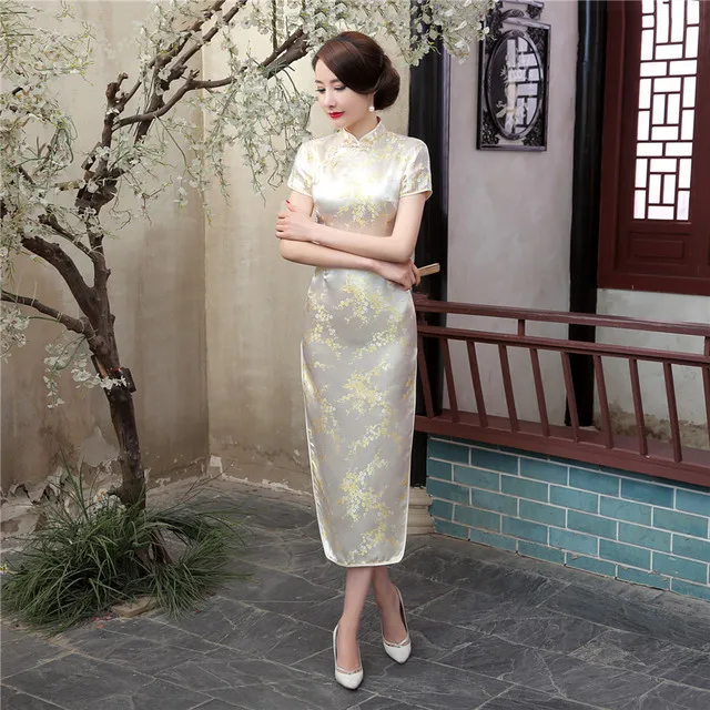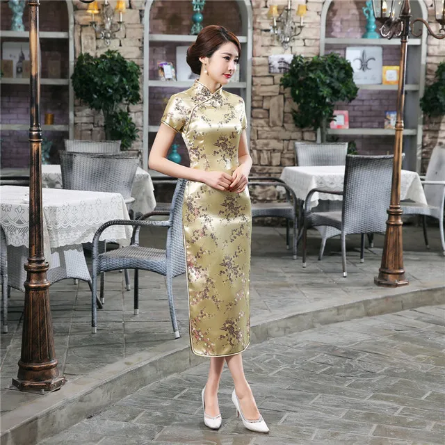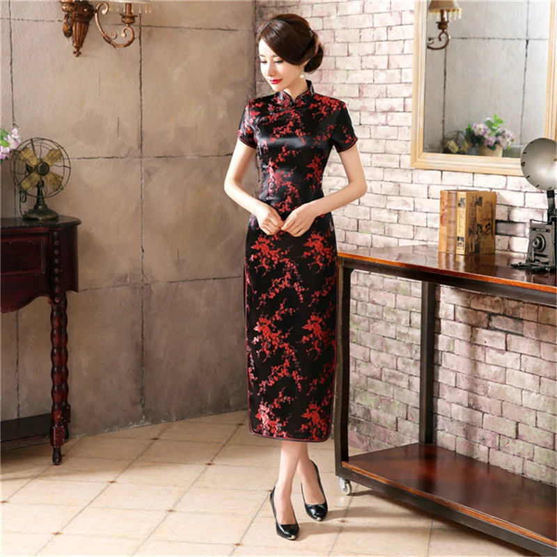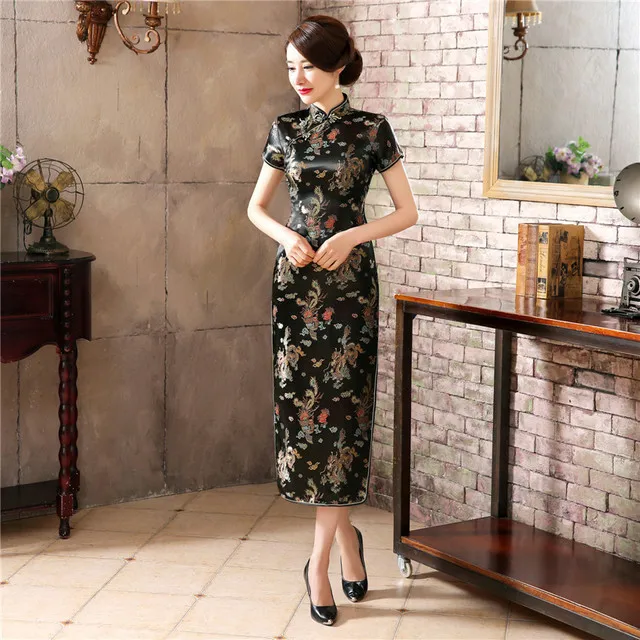 Платье женское китайское традиционное шелковое атласное, длинное пл...