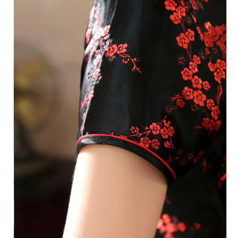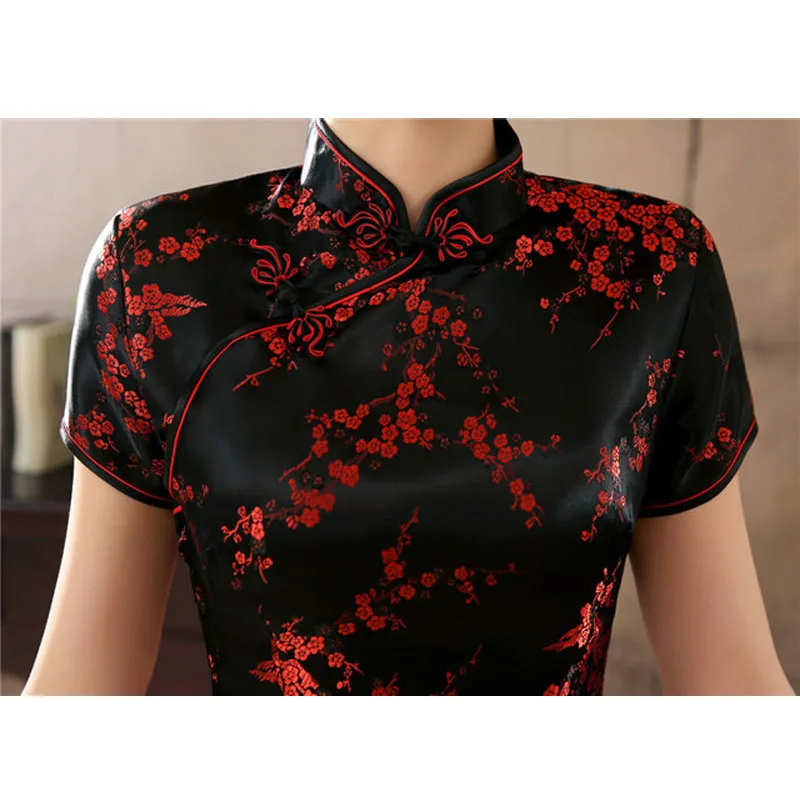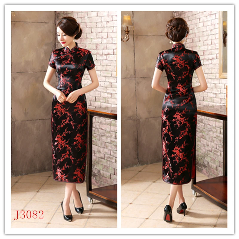 Черно-красное китайское традиционное платье, женское шелковое атлас...