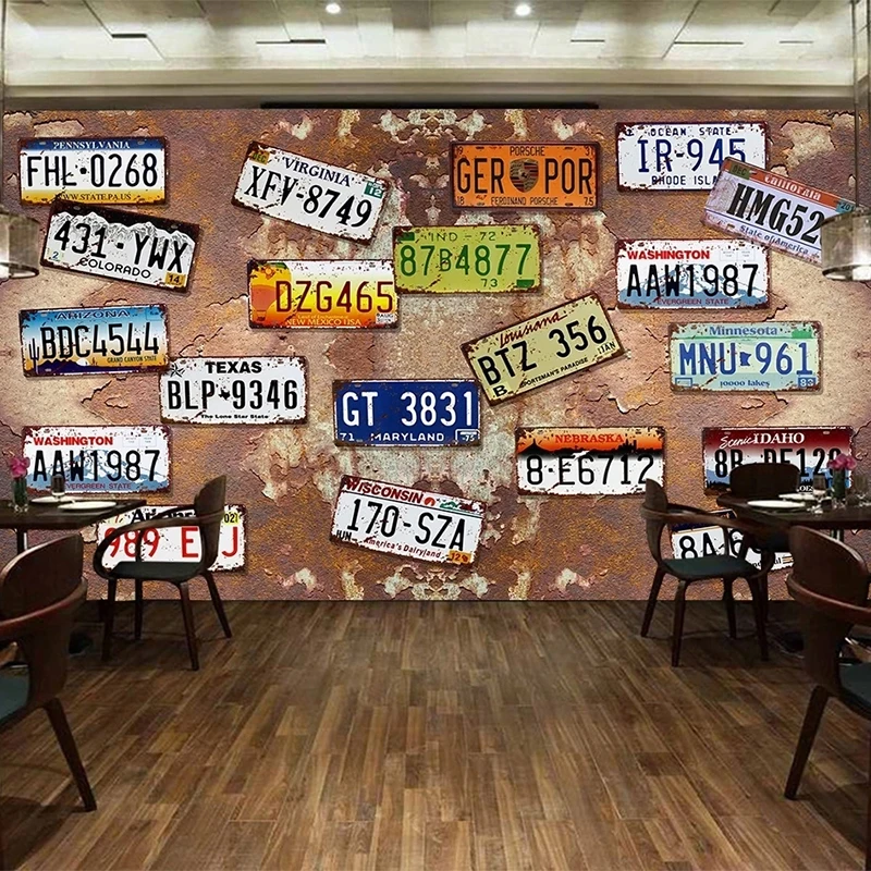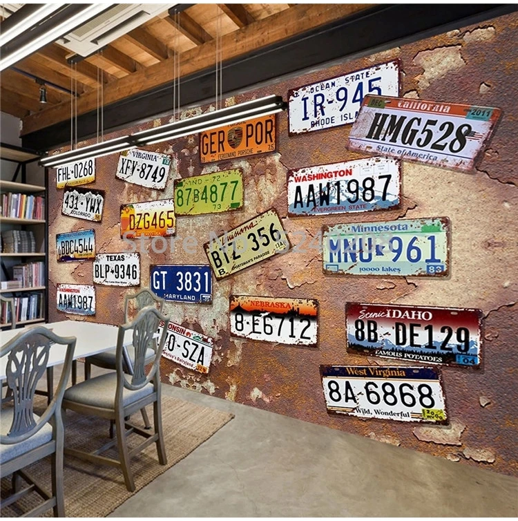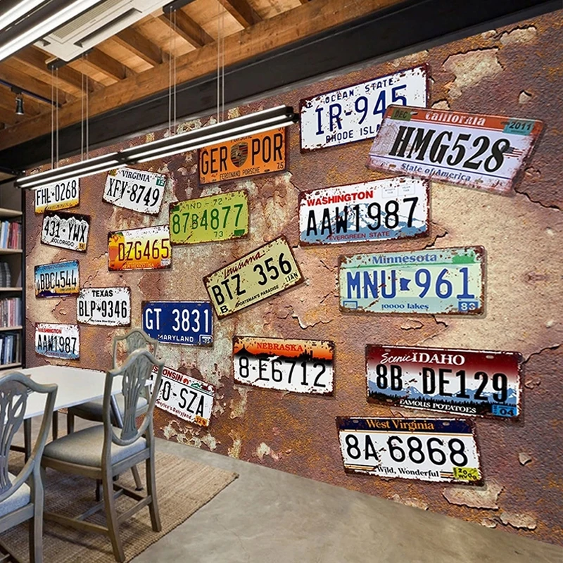 Пользовательские 3D Настенные обои ретро ностальгические ржавые стены номерной знак Фреска ресторан кафе индивидуальный Декор 3D Наклейка на стену