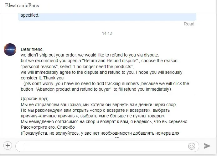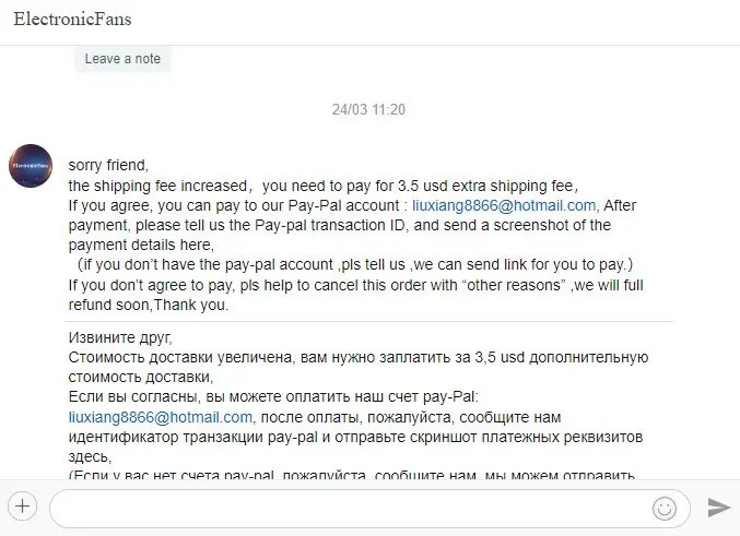 Продавец является мошенником. После оплаты начали вымогать дополнительные деньги за доставку. Когда я отказался, он дал поддельный трек-номер и сказал, что не отправит товар. Этот мошенник сказал мне открыть спор на его условиях. Я отказался, и он сказал, что не вернет мне деньги. Из-за того, что был прикреплен трек-номер, aliexpress потребовалось много времени, чтобы вернуть деньги. В результате я потерял много времени и нервов. Не покупайте здесь, если не планируете доплачивать 5-10 долларов за доставку