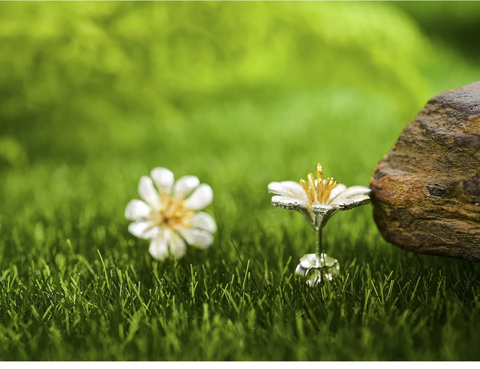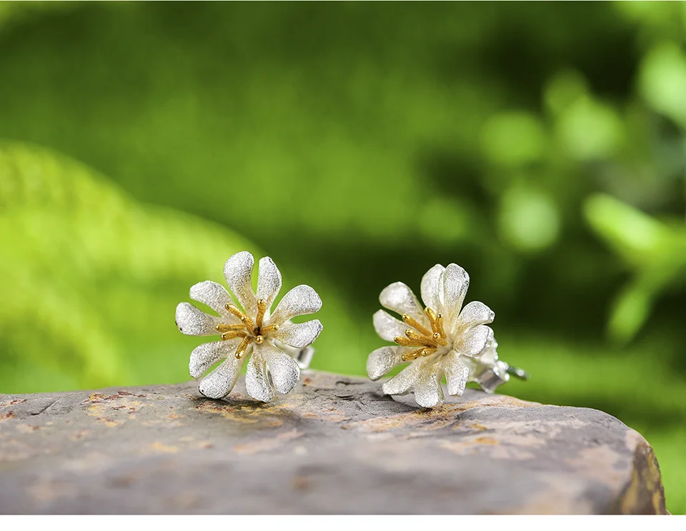 Женские серьги-гвоздики Lotus Fun, изящные серьги ручного изготовления из настоящего серебра 2021 пробы с дикими цветами, 925