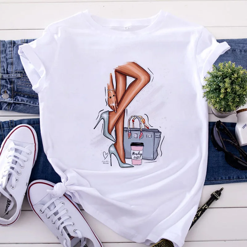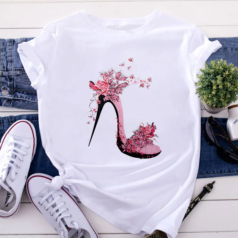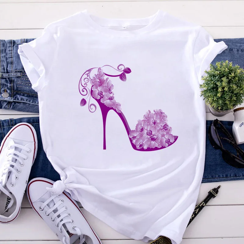 Harajukuмодные женские футболки с графическим принтом; Пикантная женская футболка на высоком каблуке с принтом; Милые футболки для девочек; Женские топы; Летний подарок Для Подружек