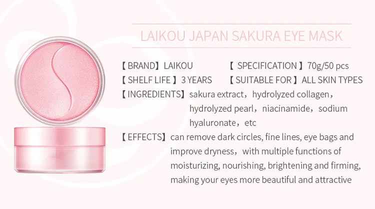 Патчи под глаза LAIKOU Sakura коллагена, маска для кожи вокруг глаз, мешков, морщин, темных кругов, гелевые патчи для глаз, уход за кожей 70 г