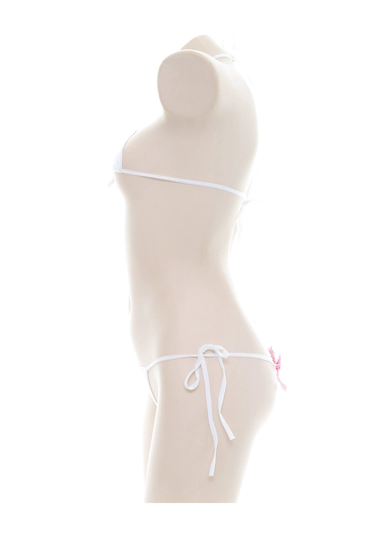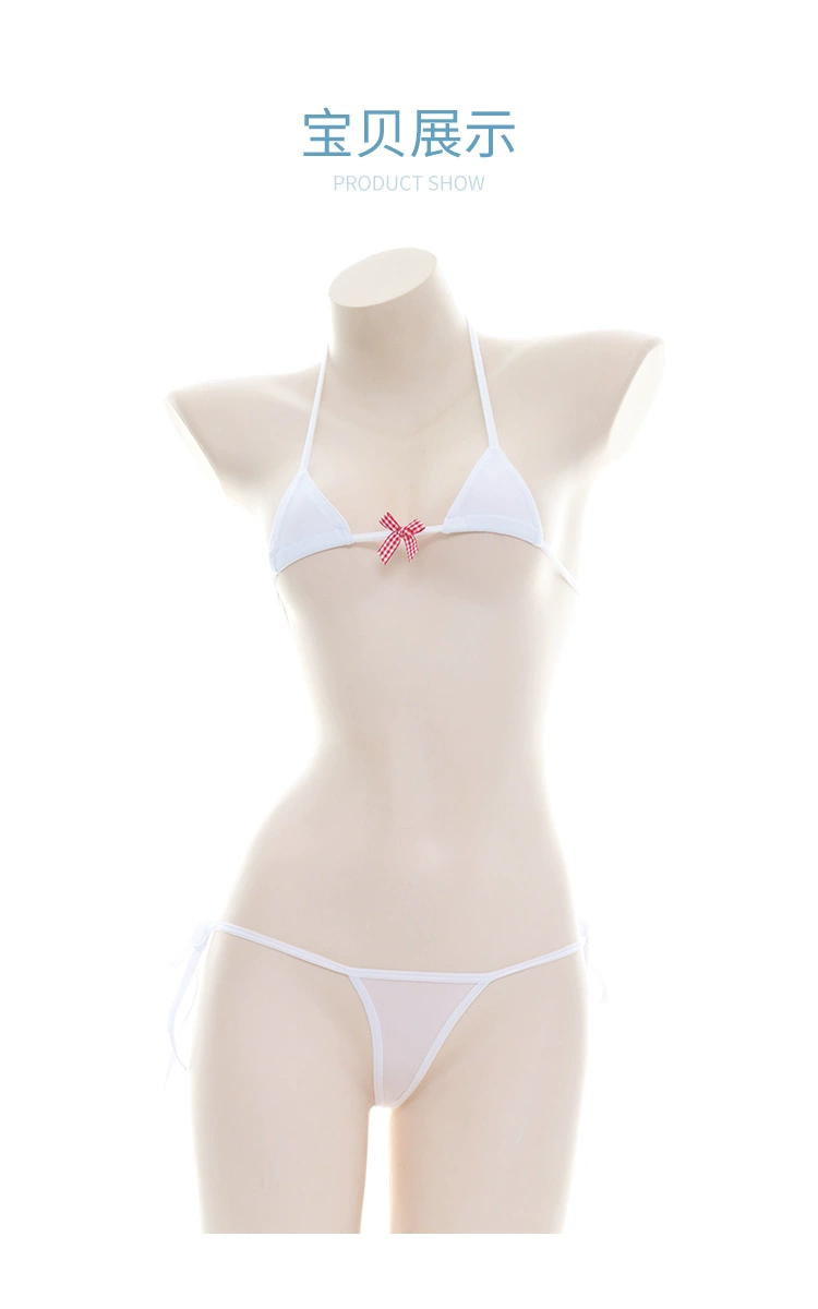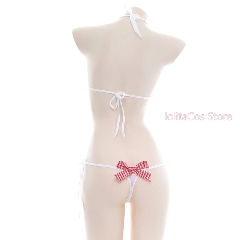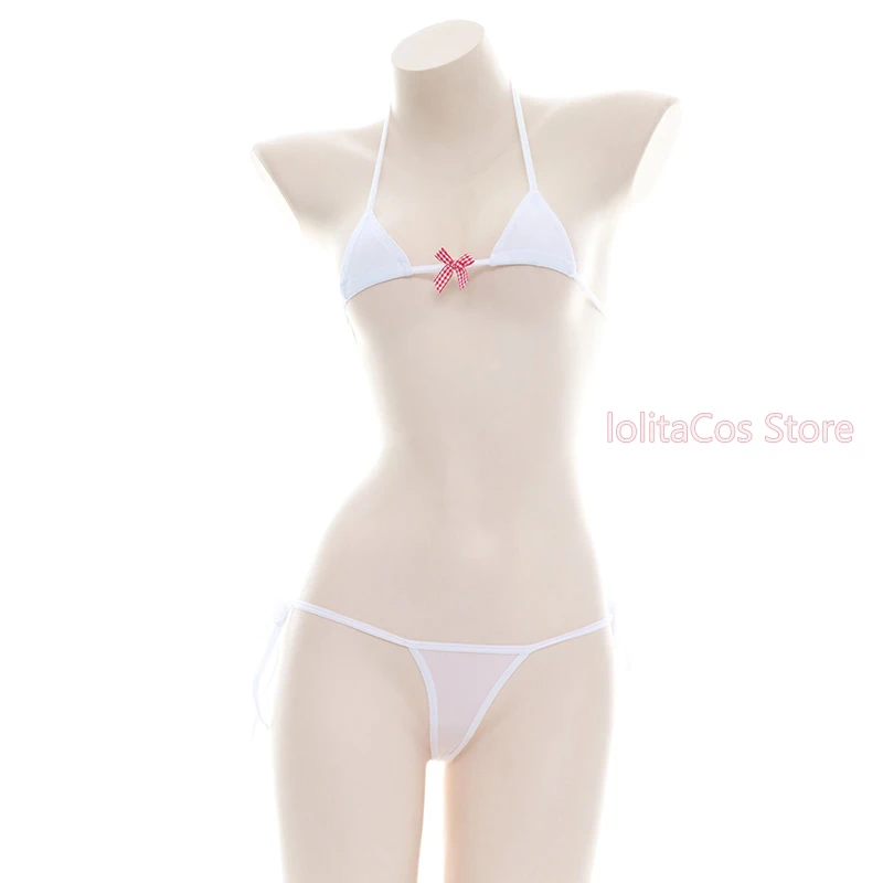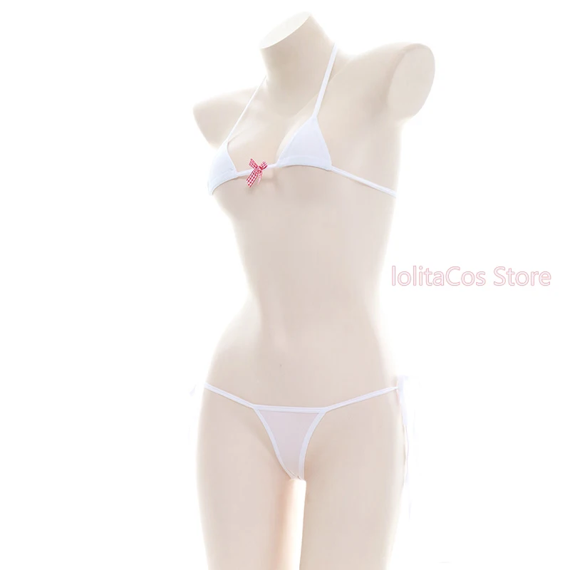 Белый милый мини-комплект бикини с бантом из ледяного шелка, пижама, сексуальный бандажный бюстгальтер и трусики в стиле Лолиты, комплект японского мягкого женского белья для костюмированной вечеринки