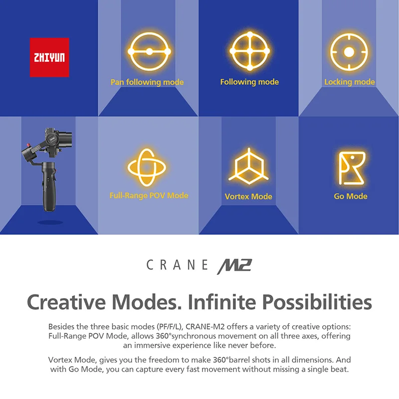 Zhiyun Crane M2 3-осевой ручной шарнирный стабилизатор для камеры GoPro Портативный все в одном Для беззеркальных камер смартфонов экшн-камер