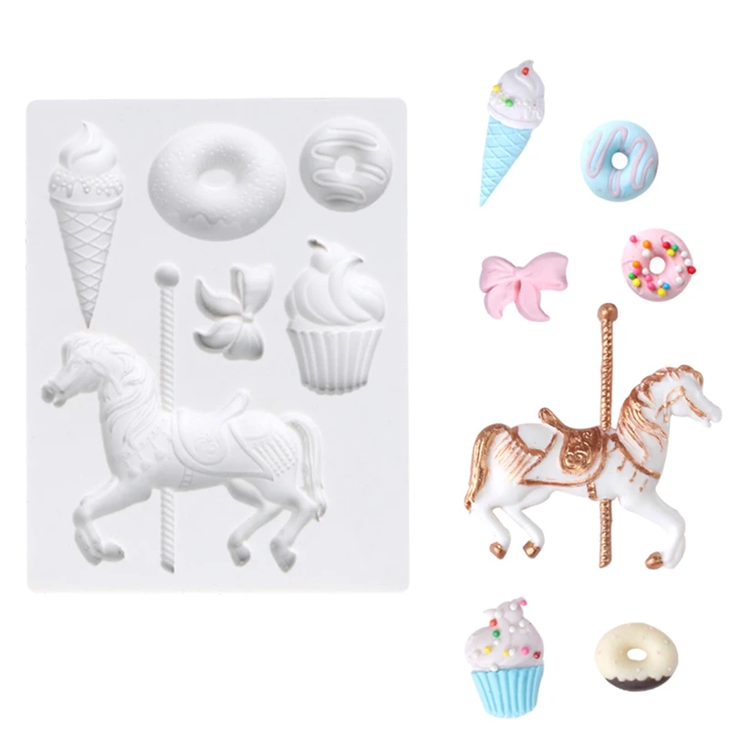 Trojan Мороженое детская мука помадные формы Карусель лошадь торт украшение силиконовая форма для шоколада Diy Инструменты для выпечки k924