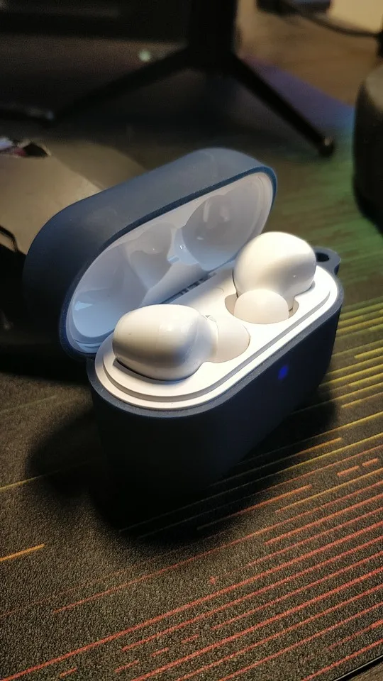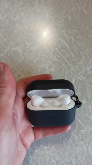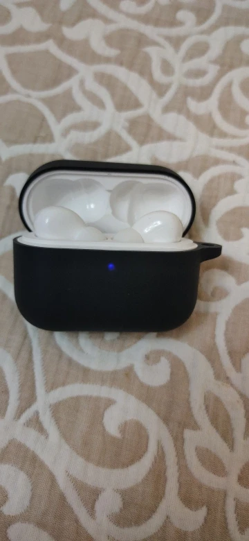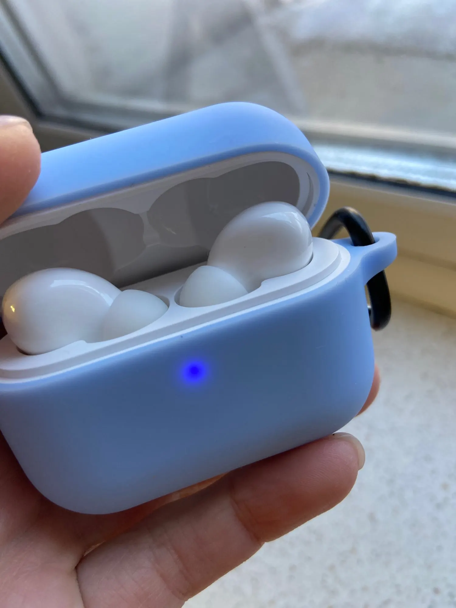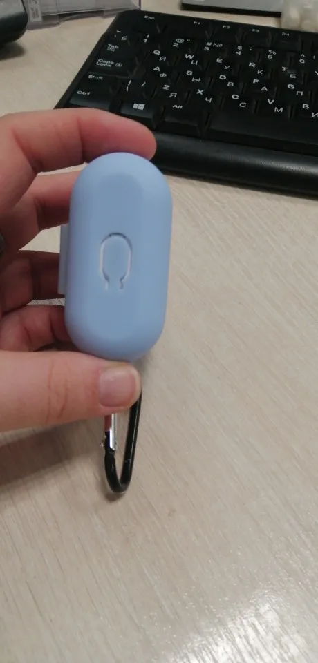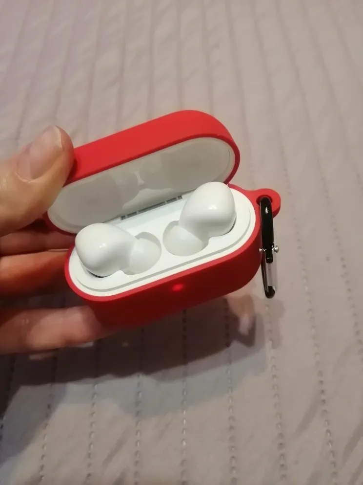 Он пришел менее месяца. Это отлично. Очень приятный на ощупь. В комплект входит карабин. Мне очень понравилось, что с чехлом на нем вы можете увидеть состояние батареи, светодиода в чехле от наушников.