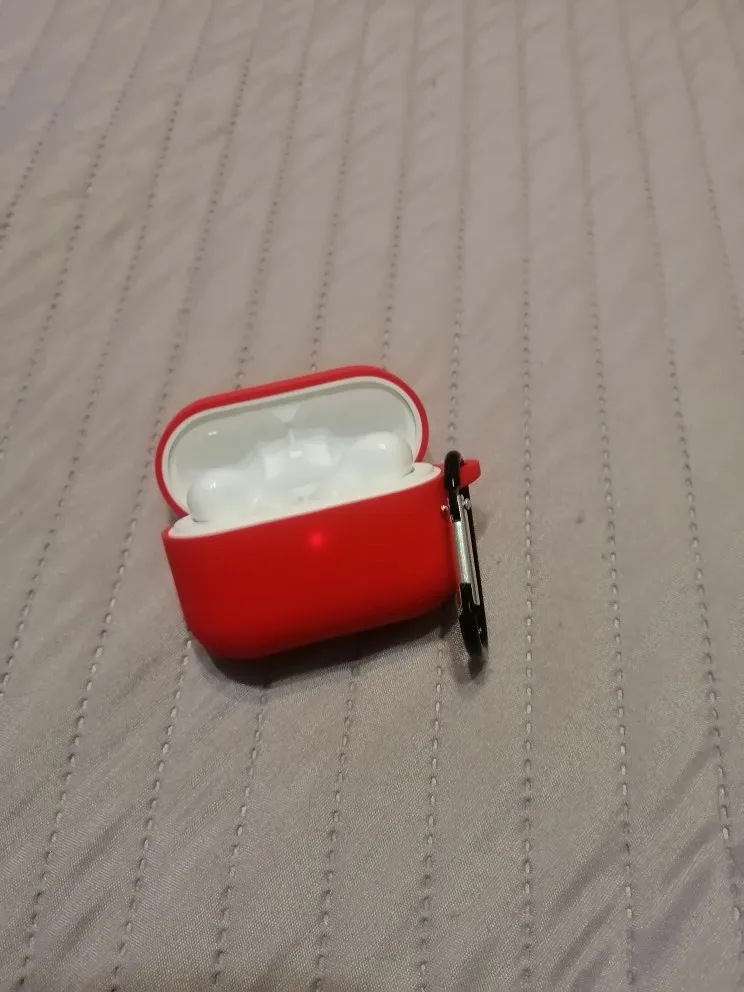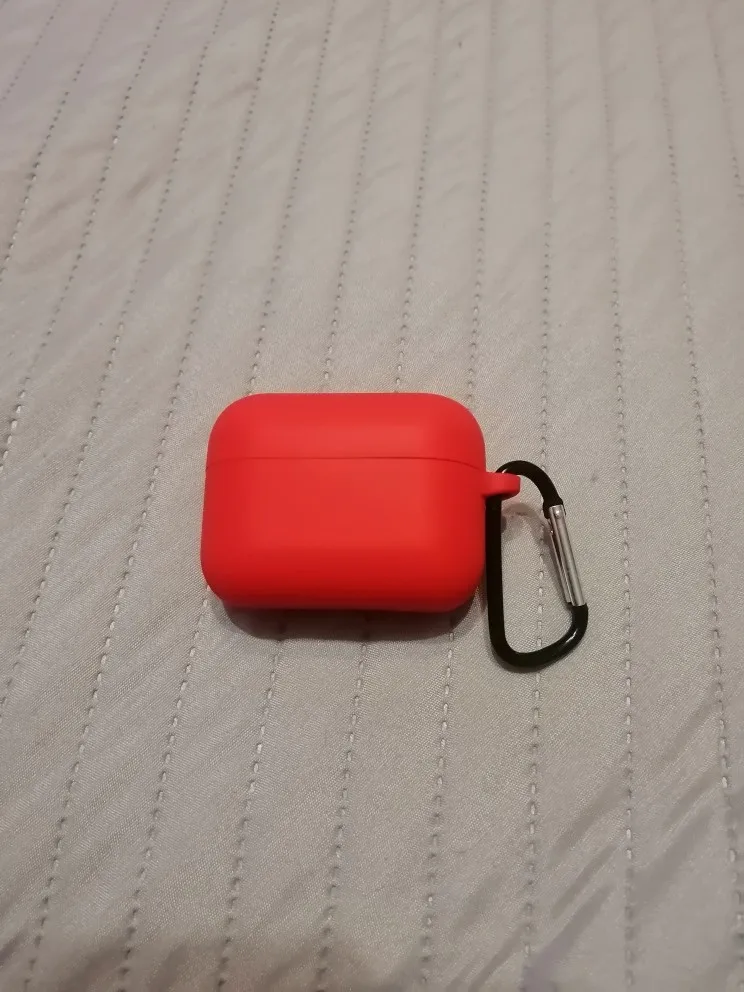 Чехол приехал за 3 недели. Чехол неплохой, приятный силикон. Единственный момент - чехол немного больше по объему, чем сам кейс наушников, поэтому он немного оттопыривается. За 150 рублей неплохо. Даже простецкий карабин есть в комплекте.