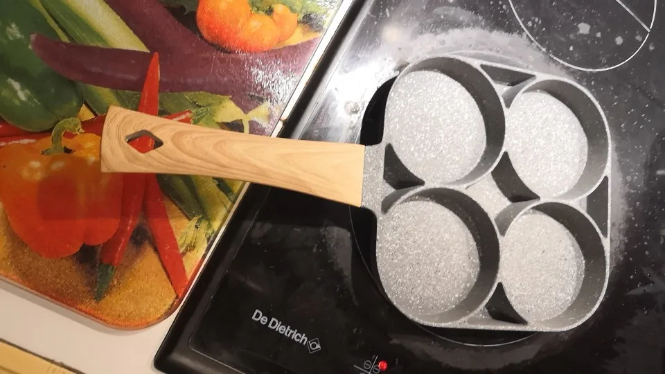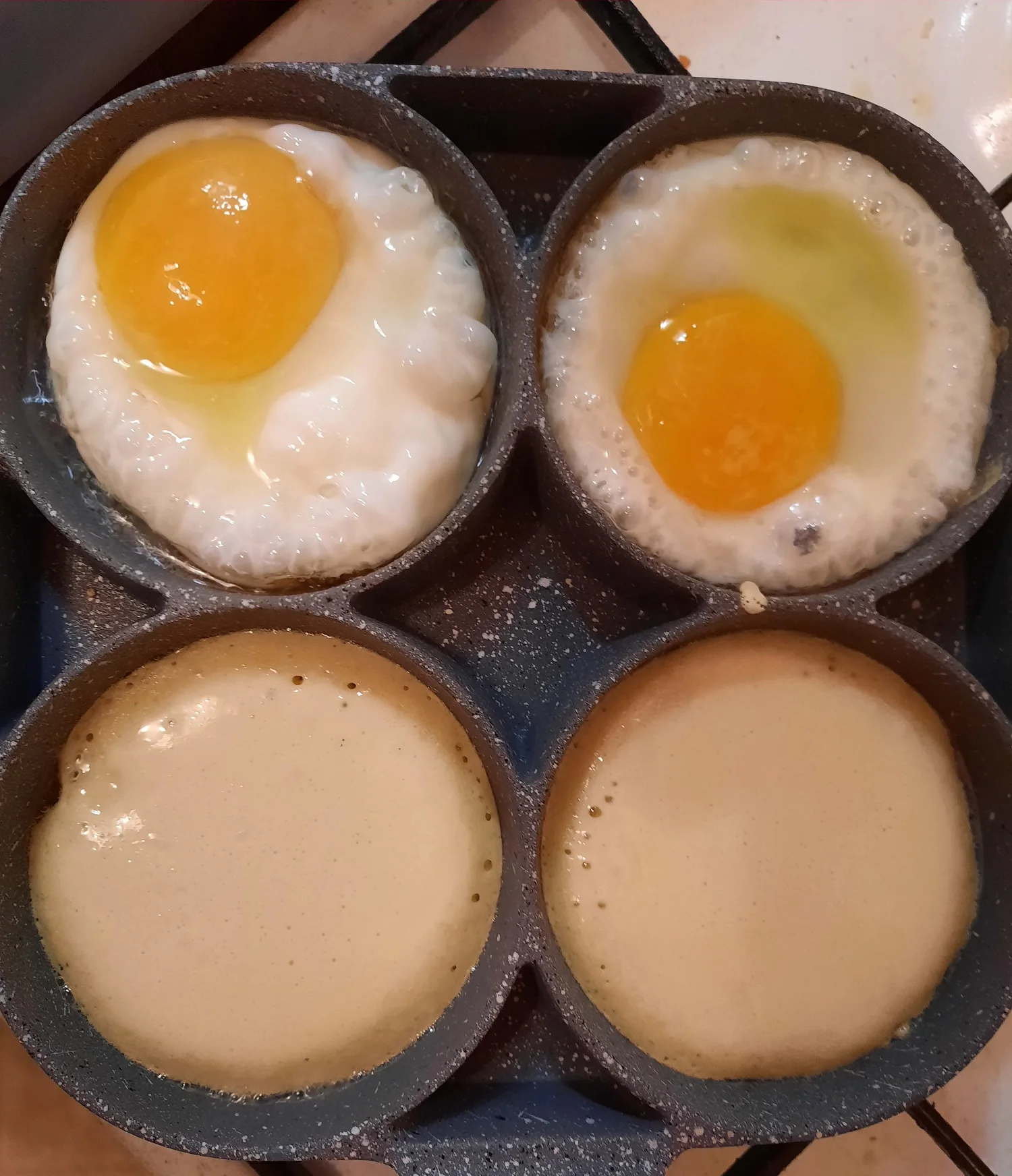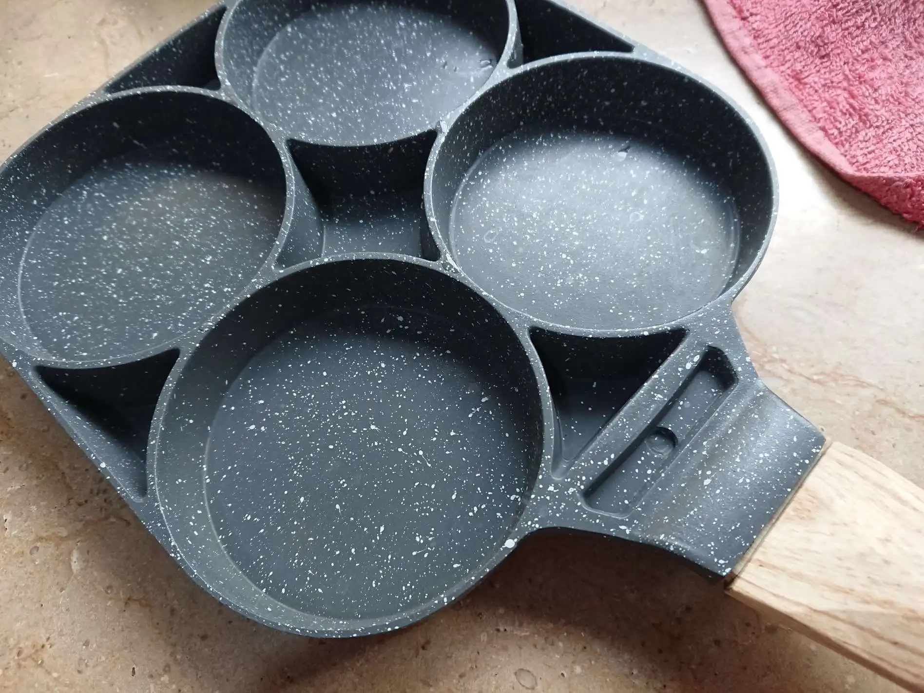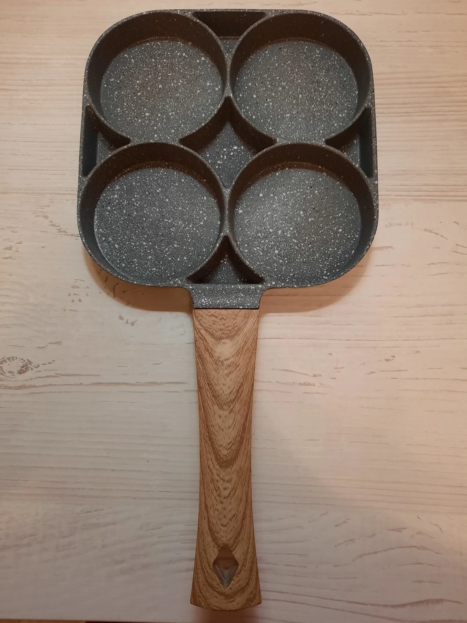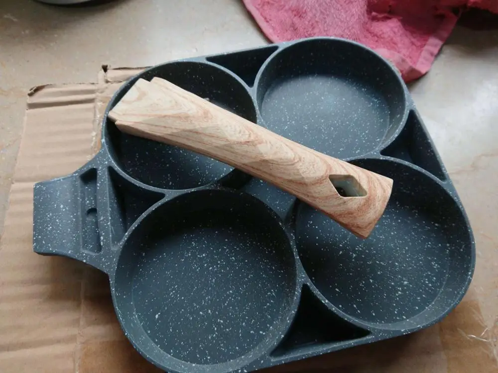 Кастрюля с 4 отверстиями сковорода для омлета для бургеров, яиц, ветчины, блинов, деревянная ручка, антипригарная, для приготовления завтрака