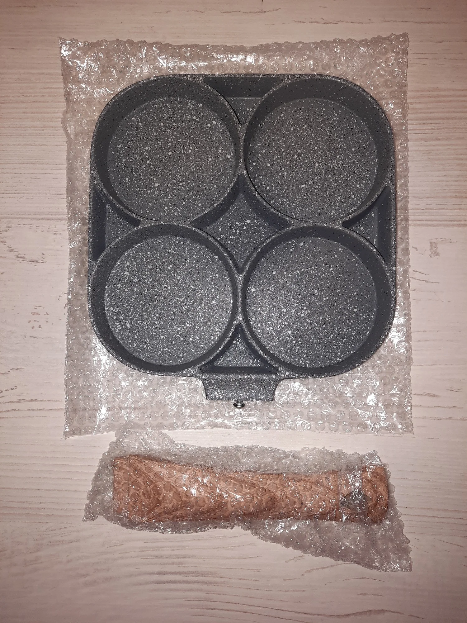 Посылка пришла в мск очень быстро -за 7 дней. Качество покрытия сковородки хорошее. Сама сковорода очень миниатюрная, как игрушечная, но для жарки яйца в каждой форме идеально.
