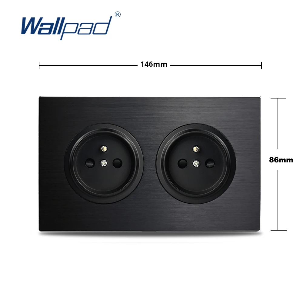 Wallpad L6 черная двойная Европейская французская настенная электрическая розетка, сатинированная алюминиевая рамка, пластина 3x6, 146 х 86 мм