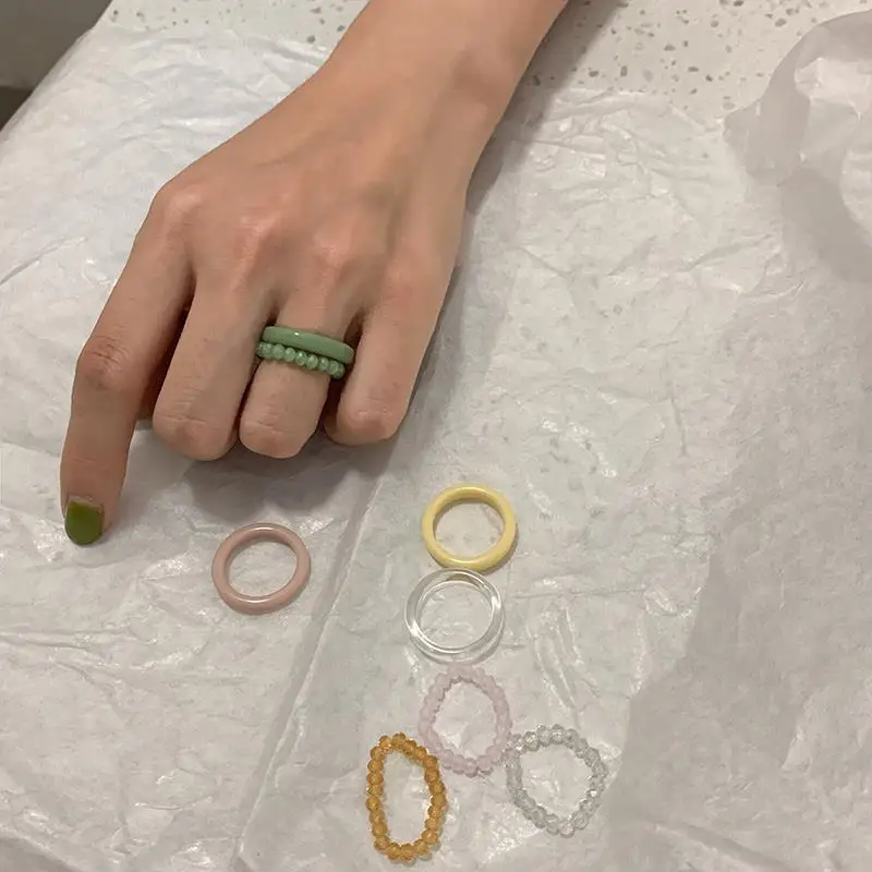 Кольцо coxeer, 2 шт.компл., однотонное, эластичное, модное, симпатичное, из смолы, для женщин, ювелирные аксессуары