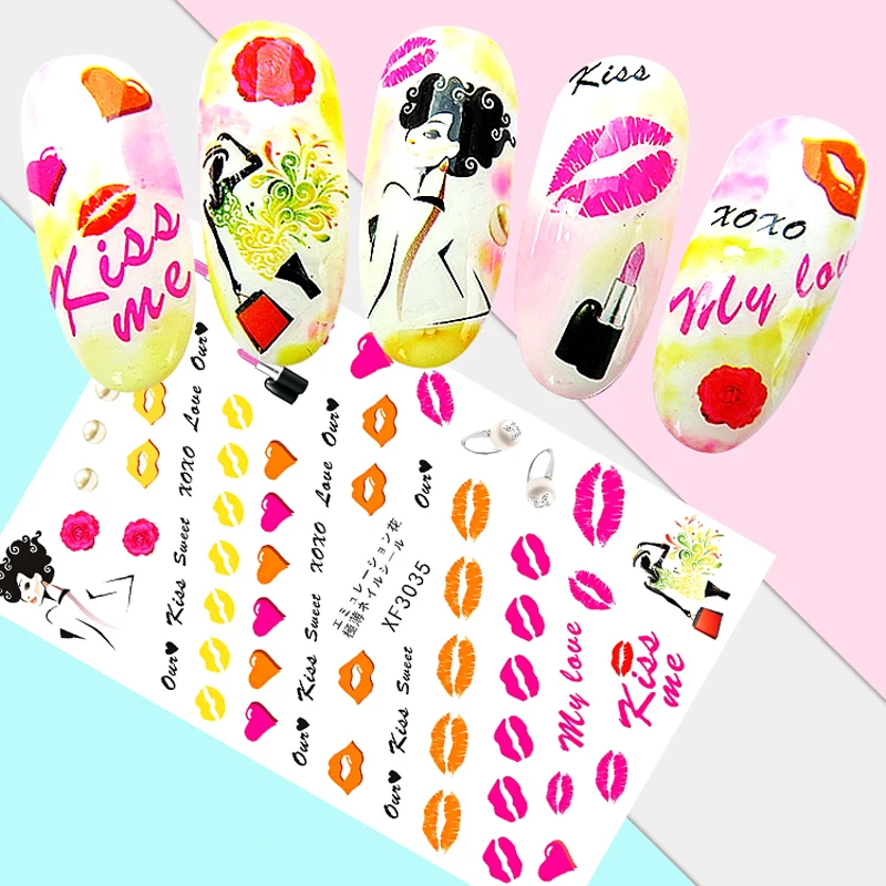3D наклейки для ногтей, сексуальные губы, крутая девушка, наклейки ...