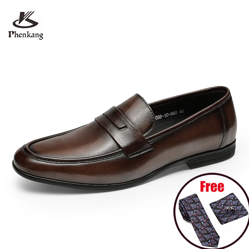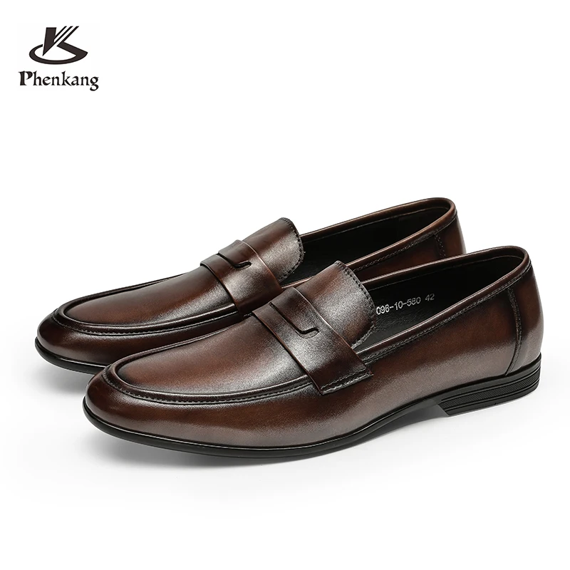 Мужские кожаные летние повседневные туфли Phenkang, мужские классические слипоны, кофейные мужские лоферы из натуральной кожи, обувь для вождения