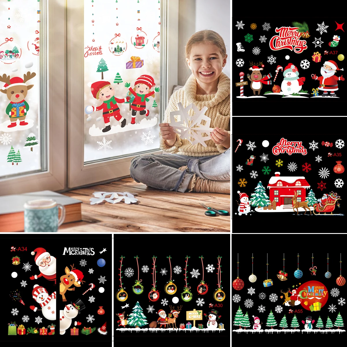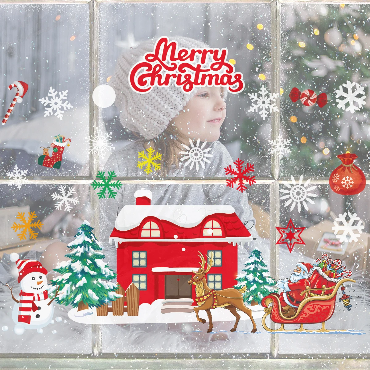 Рождественские наклейки на окна, Санта-Клаус, снежинка, украшение на стену, Рождественское украшение для дома, 2020, рождественские украшения, Navidad Nata