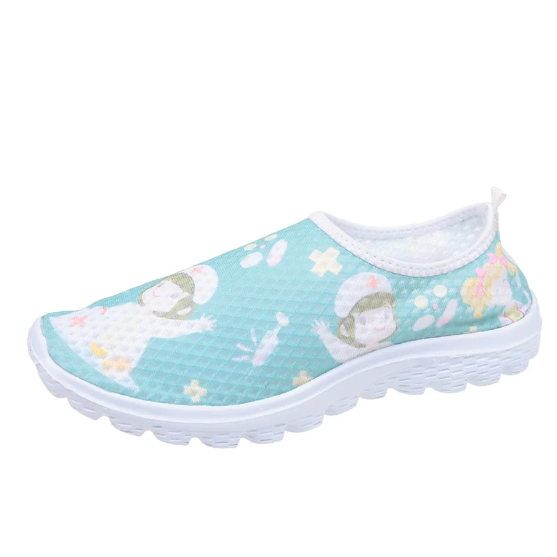 LYXLYH весенние кроссовки для медсестер на плоской подошве женские милые Мультяшные кроссовки с принтом женские дышащие сетчатые кроссовки на плоской подошве женская обувь