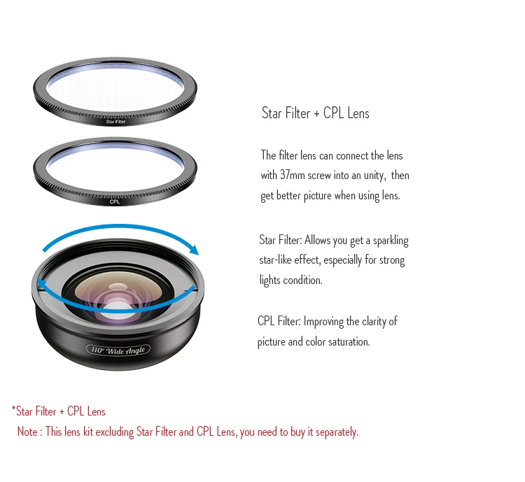 APEXEL HD Оптический Телефон Мобильный объектив 110 градусов широкоугольный объектив с CPLStar фильтр объектив для iPhone Samsung Xiaomi Huawei большинство смартфонов