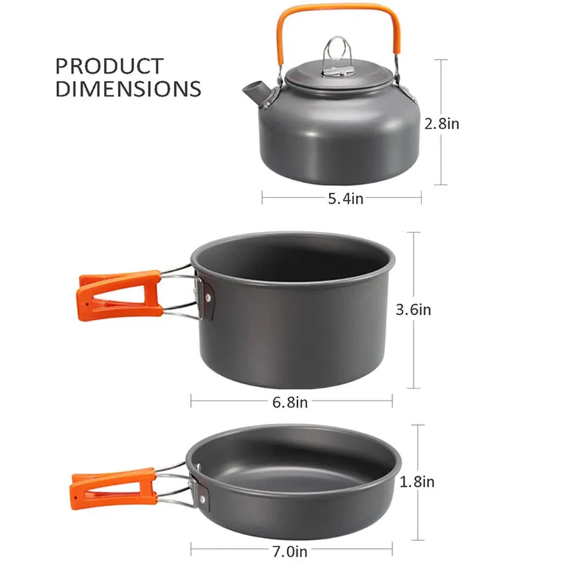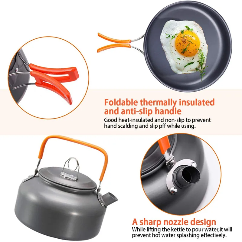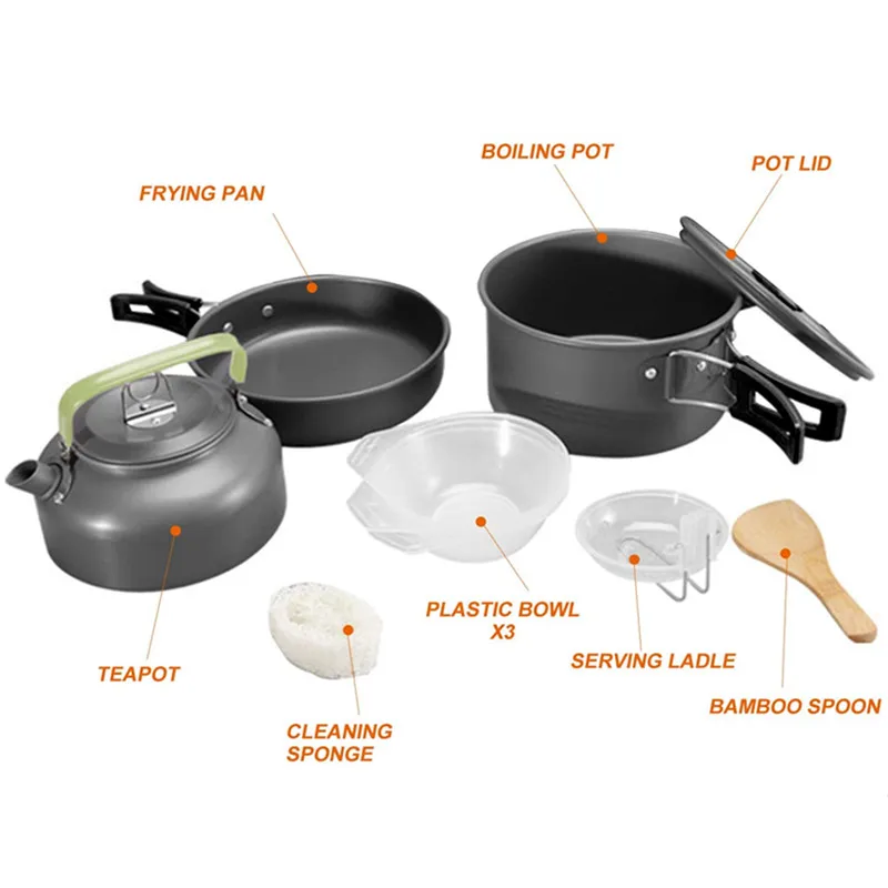 Портативная кастрюля для кемпинга, легкий набор для приготовления пищи, набор посуды с антипригарным покрытием для походов, пикника, барбекю