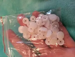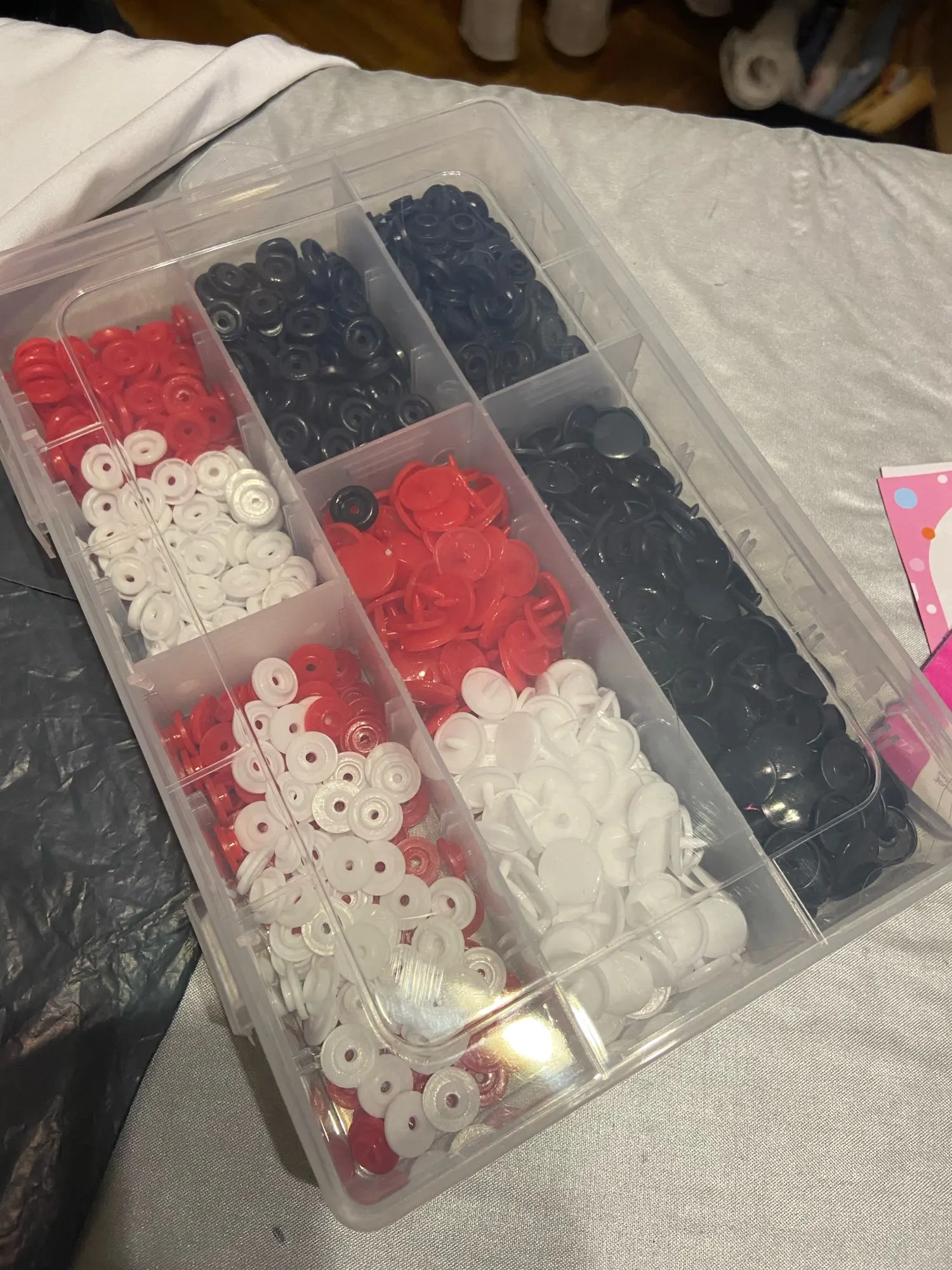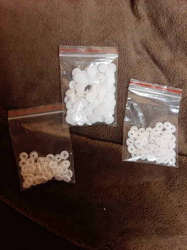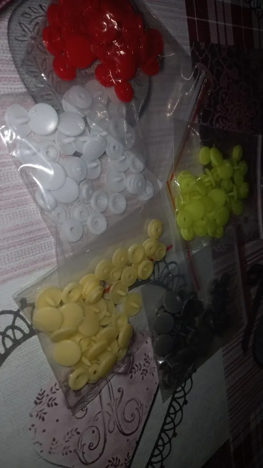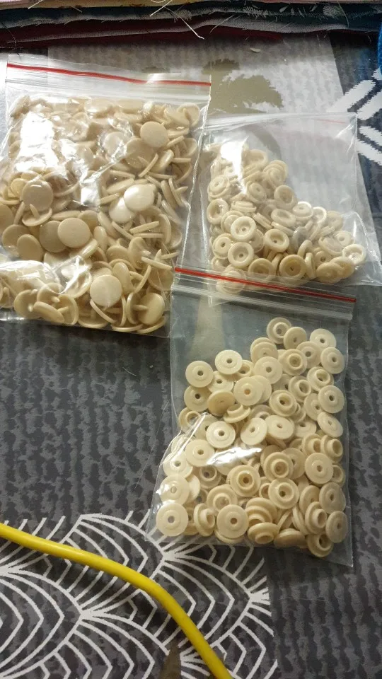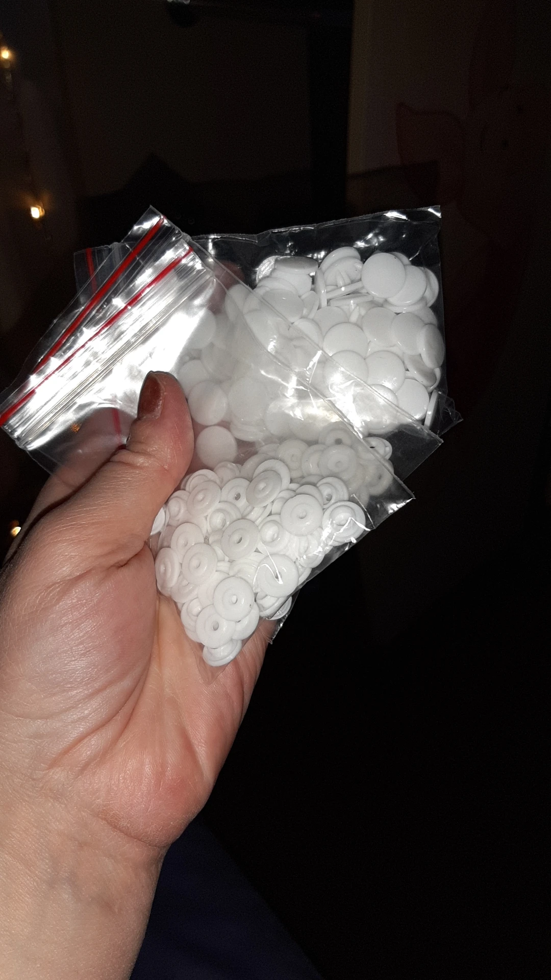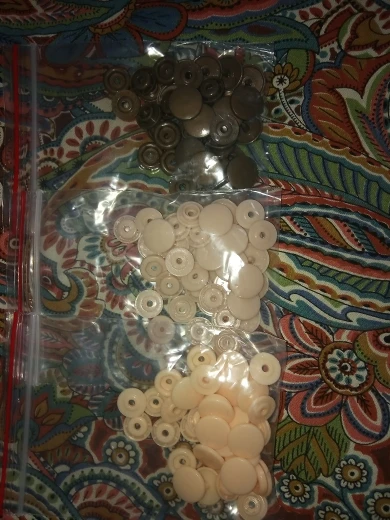 Кнопочки хорошие. Подходят для щипцов prym. Заказывала белые, черные и микс цветов. Единственное, что в миксе прислали кнопочки коричневого цвета. Я почему-то думала, что в миксе будут кнопочки разных цветов. Но видимо эта позиция означает, что вам пришлют просто один рандомный цвет кнопочек. В принципе так тоже не плохо, всё равно собиралась приобрести кнопочки такого цвета