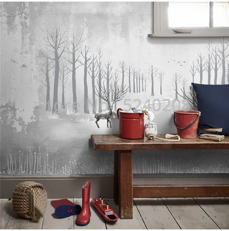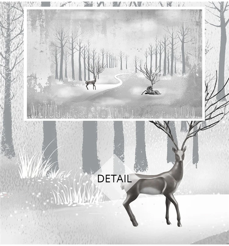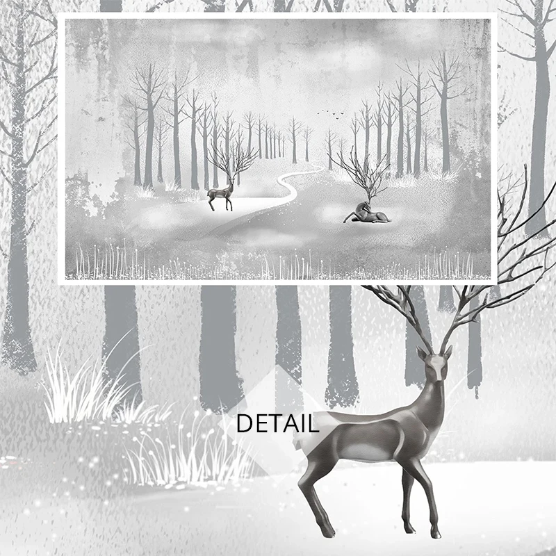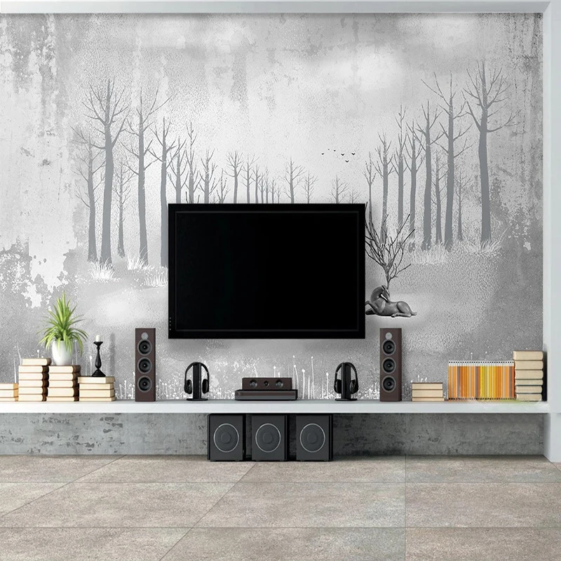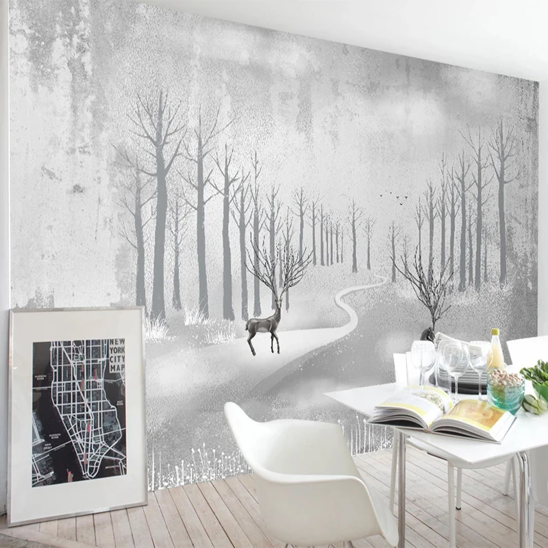 Самоклеящаяся настенная бумага на заказ, современная абстрактная 3D настенная бумажная с изображением черно-белого дерева оленя, ландшафта, для гостиной, ТВ, 3D наклейки