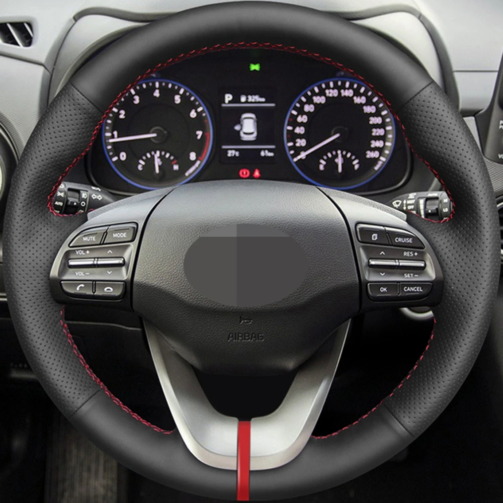 Сделай Сам, сшитая вручную черная натуральная кожа чехол рулевого колеса автомобиля для Hyundai Veloster 2019 i30 2017-2019 Elantra 2019