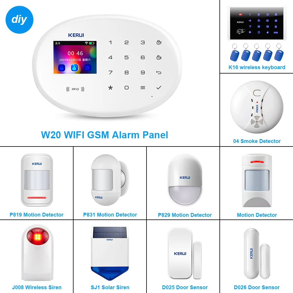 KERUI W20 домашняя система охранной сигнализации WIFI GSM 2,4 дюйма Buglar, панель сигнализации, русский, итальянский, немецкий, испанский языки, переключаемая