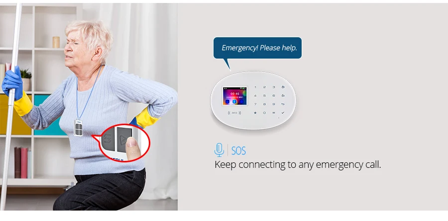 Когда пожилой человек нажимает кнопку SOS, система предупредит вас и воспроизводит запись, чтобы сообщить Вам о чрезвычайной ситуации