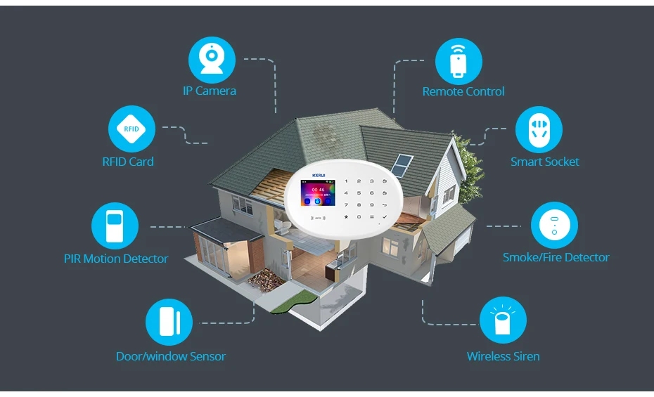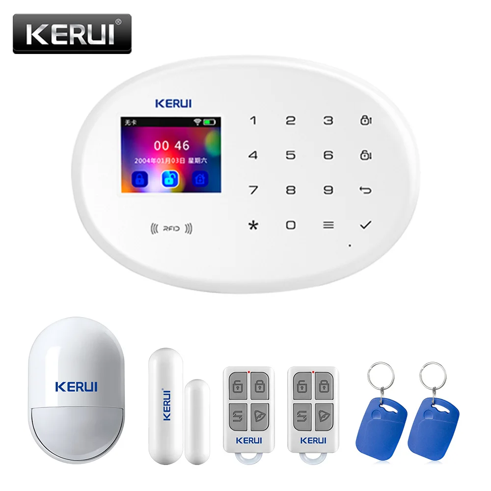 KERUI WI-FI GSM домашняя система охранной сигнализации 2,4 дюймов TFT сенсорный экран Управление Панель App rfid-карты Беспроводной Смарт Анти-вор сигнализация